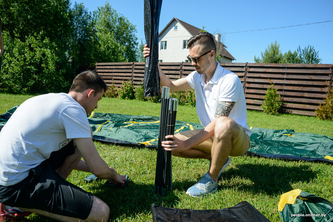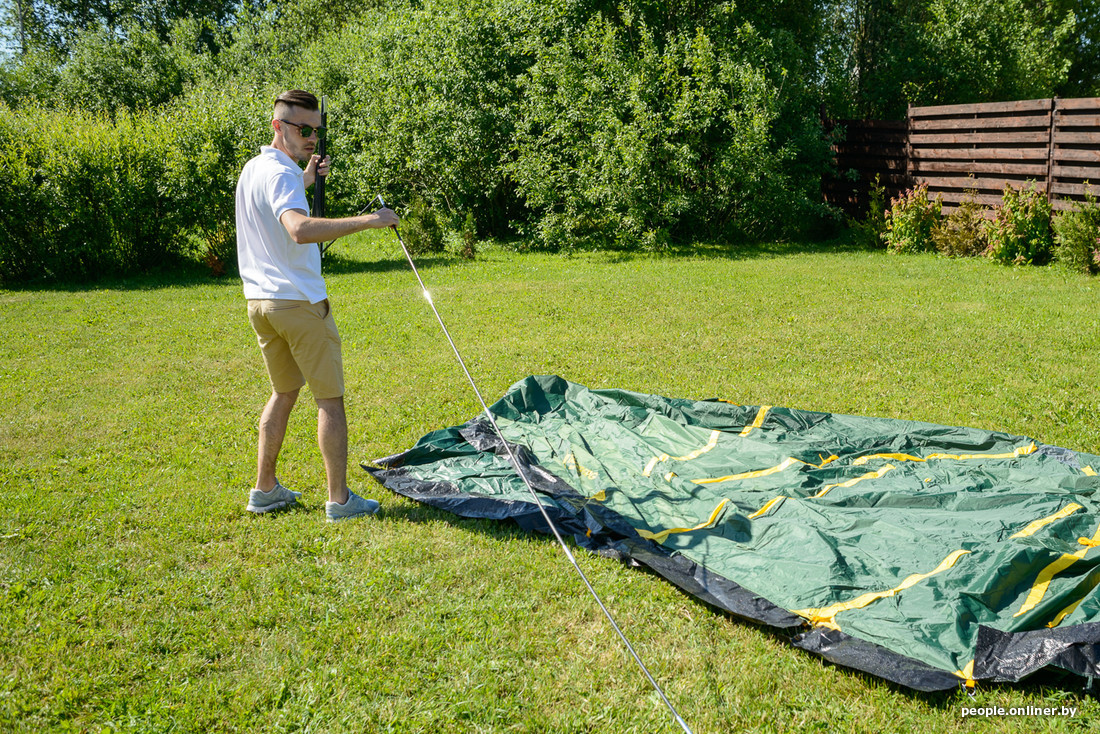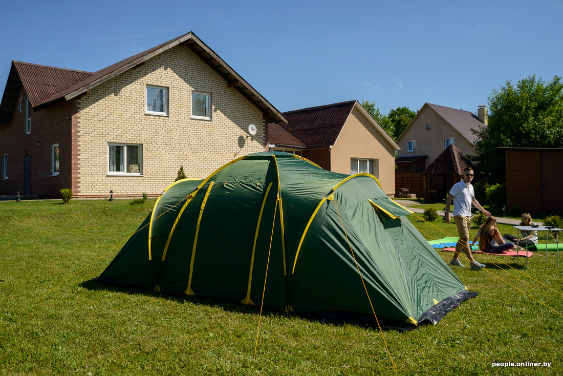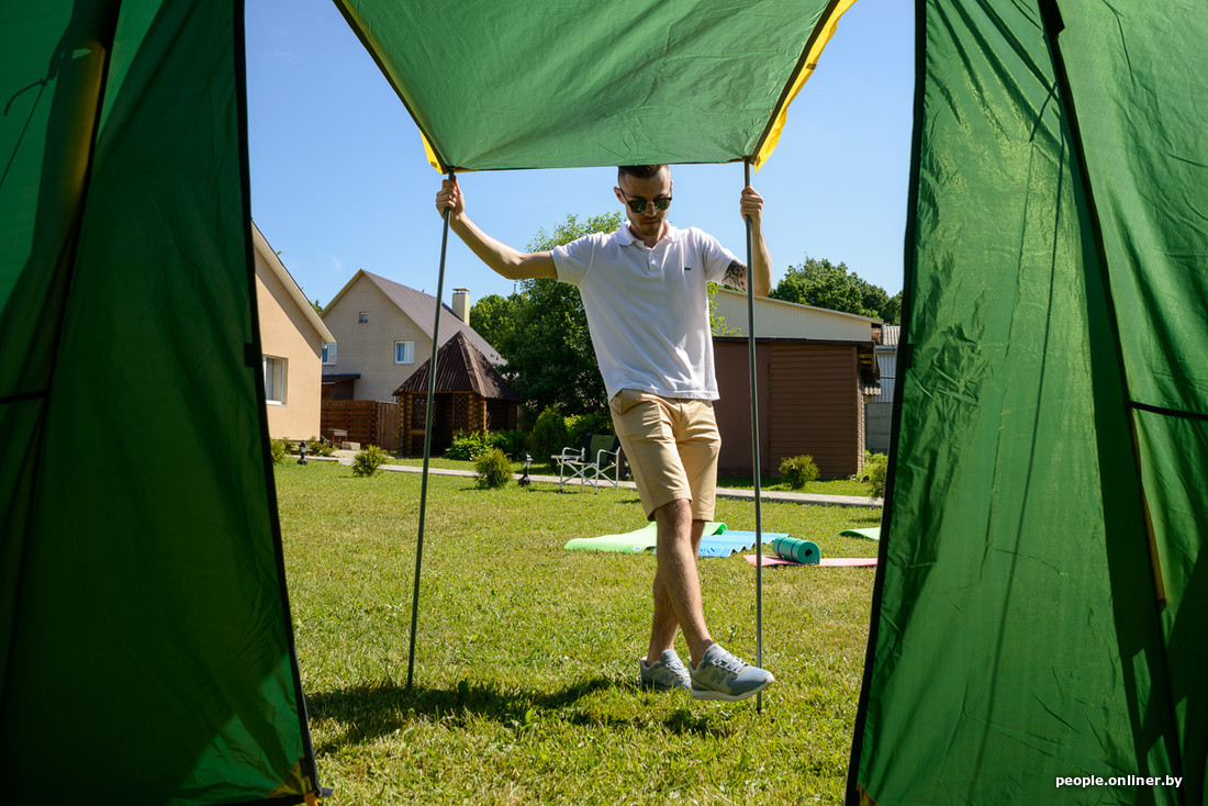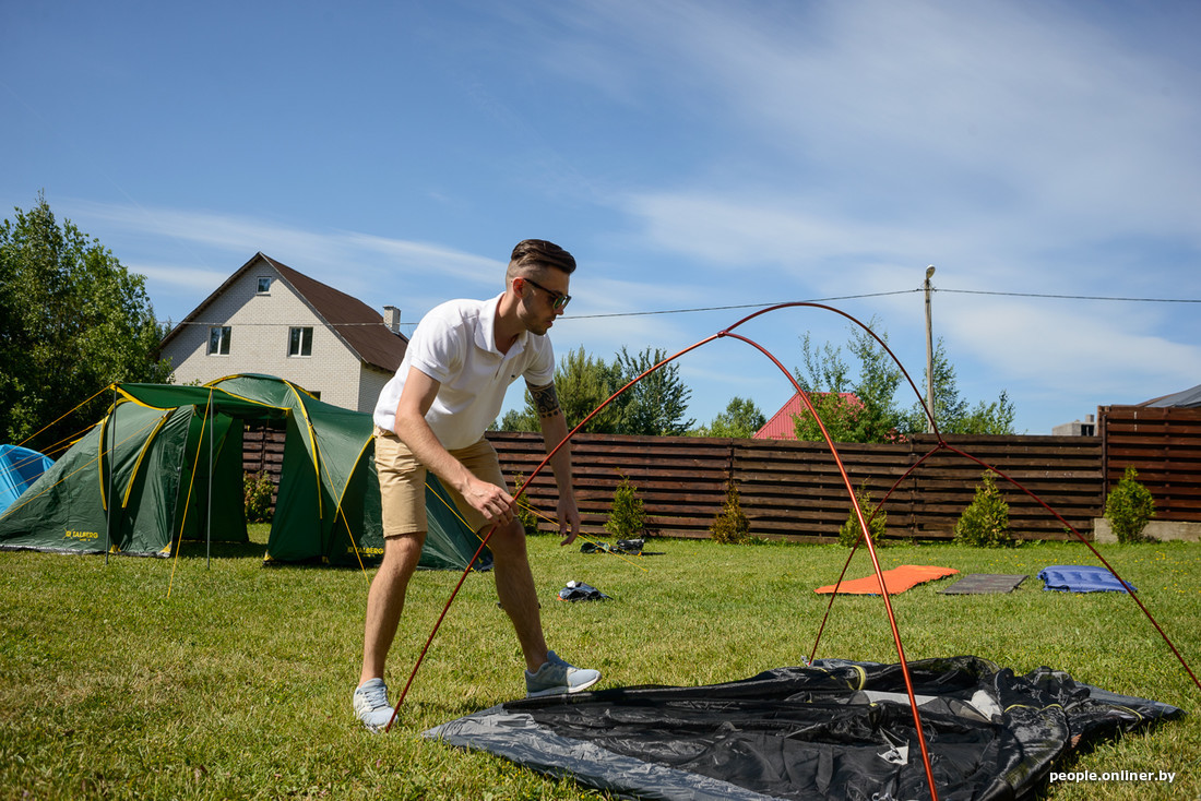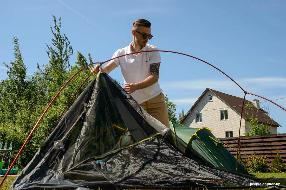 Александру достался образец посолиднее — большая кемпинговая палатка.