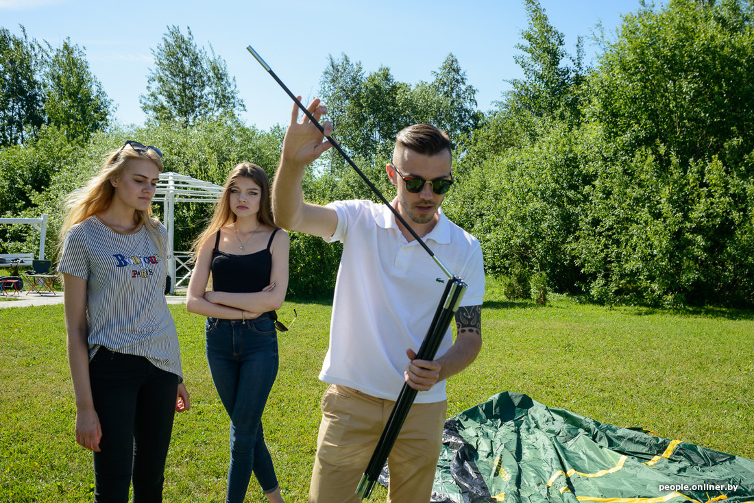 По легенде, наши герои получают палатки разного типа и пытаются их поставить. Вероника и Полина действуют в паре. Обе девушки впервые сталкиваются с таким заданием и получают за это палатку белорусского производителя «Турлан».