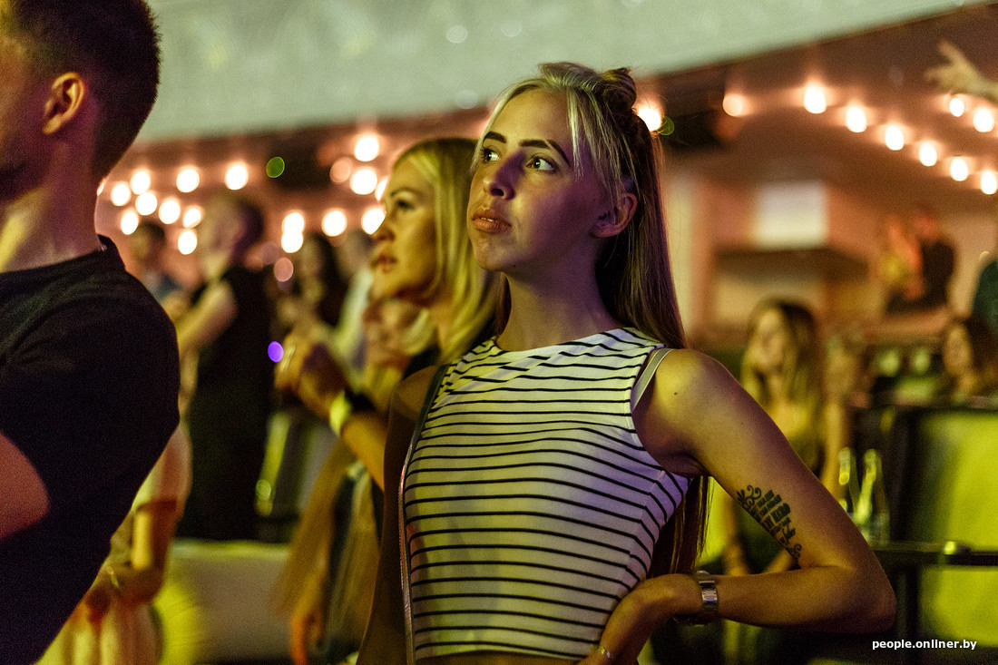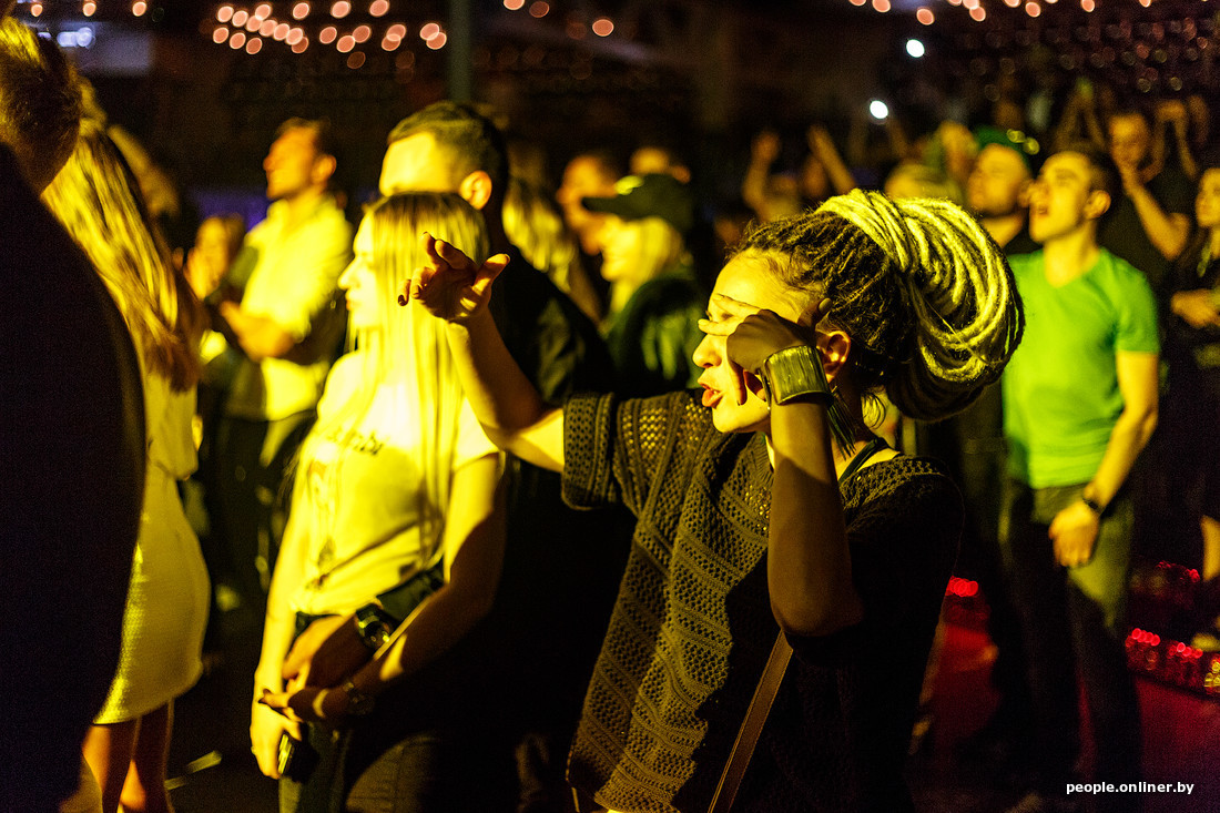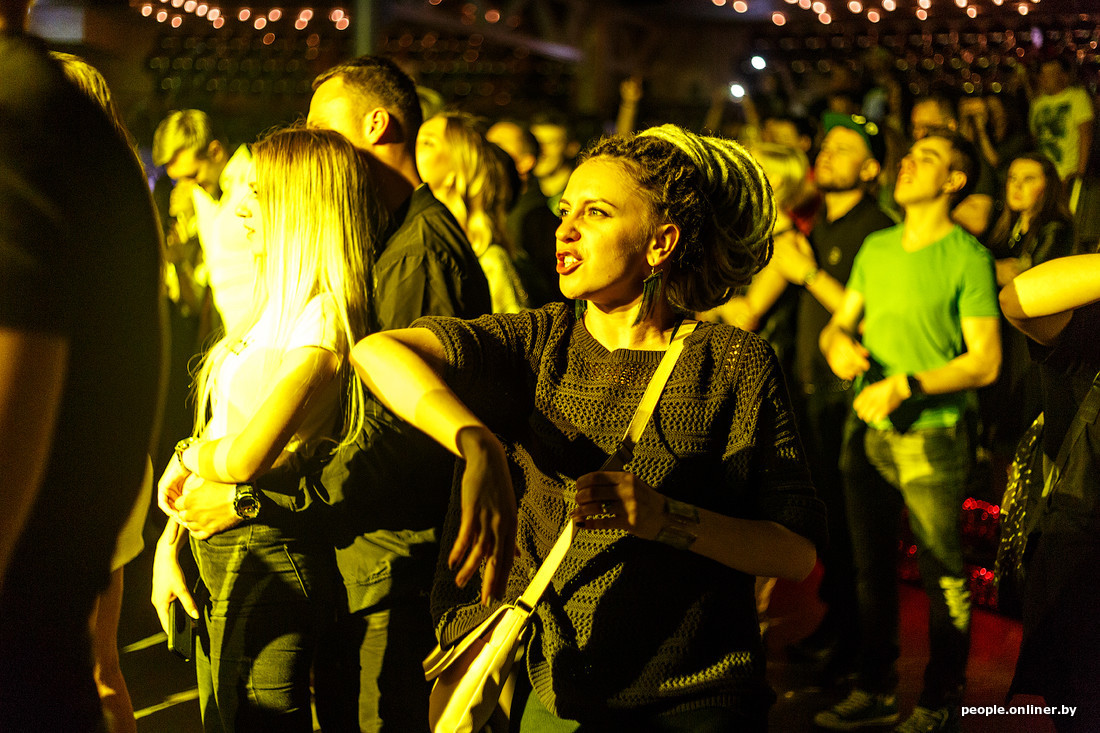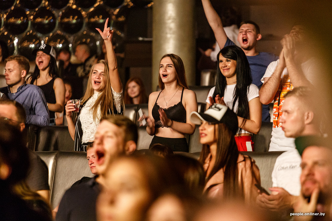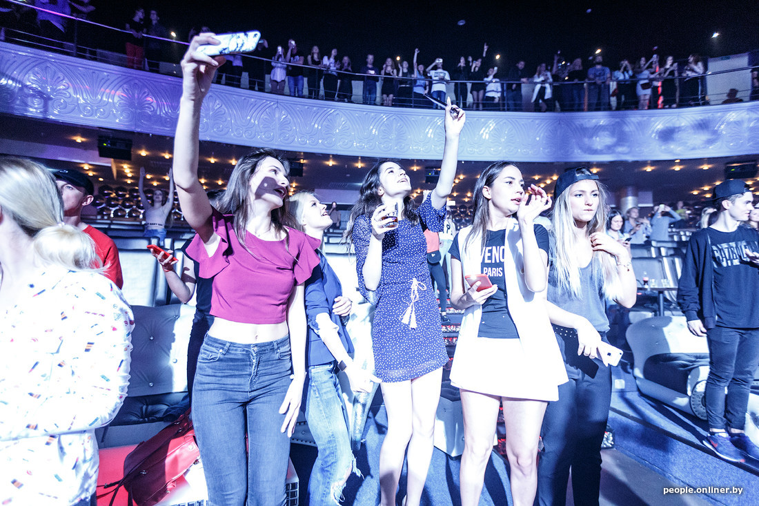 — Он очень хорошо чувствует народ и знает, что давать публике, — делится одна из многочисленных девушек. — Самое крутое, что на концертах живой звук. Никаких минусов. Ударные, гитары — это ж необычно для рэпера.