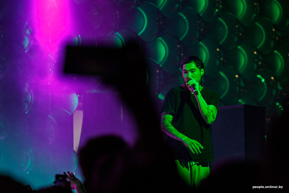Пятничный вечер в городе-герое Минске венчало выступление казахстанского рэпера Адиля Жалелова, сценически — Скриптонита. Хотя не венчало. Концерт скончался скоропостижно — в совсем детское время. Можно было успеть доделать свои будничные дела до наступления темноты. Целевая аудитория артиста подрасстроилась, но в итоге достигла основной цели, прикоснувшись к живому творчеству казаха, который был признан у соседей открытием прошлого года.