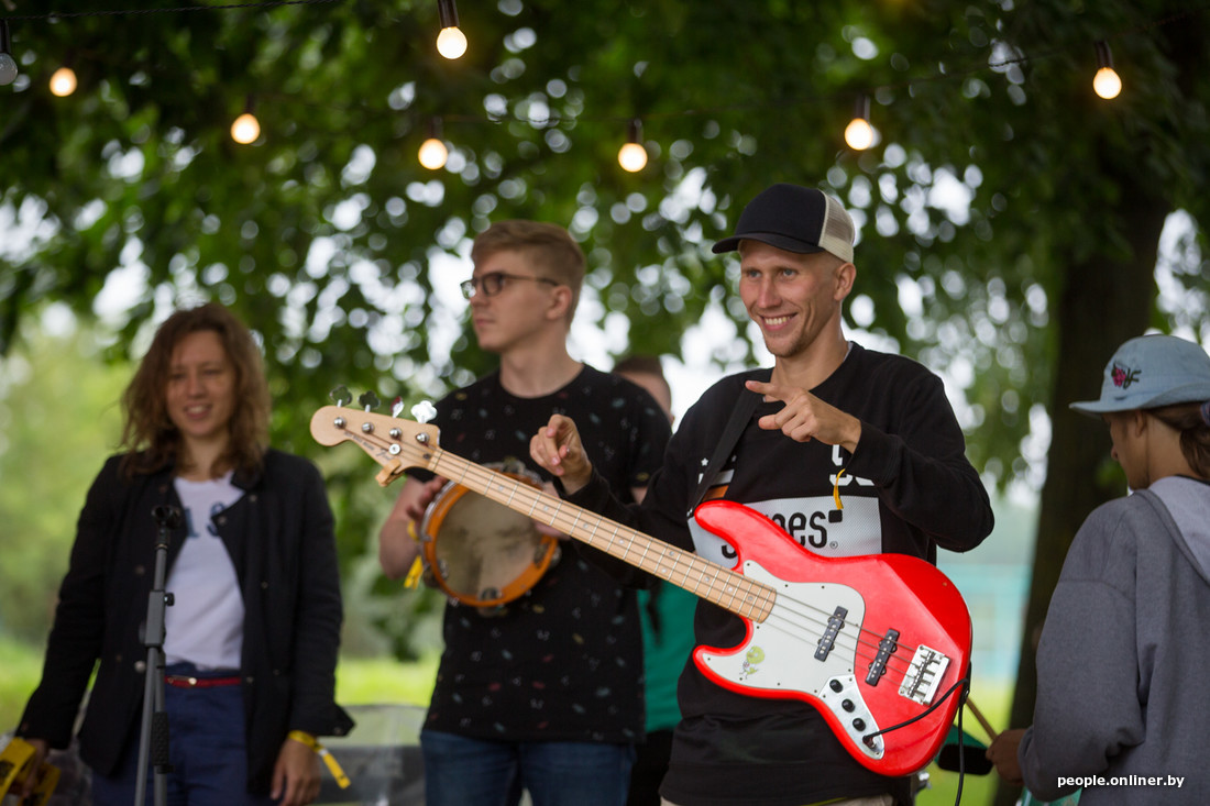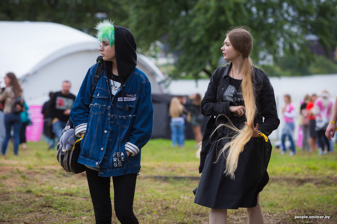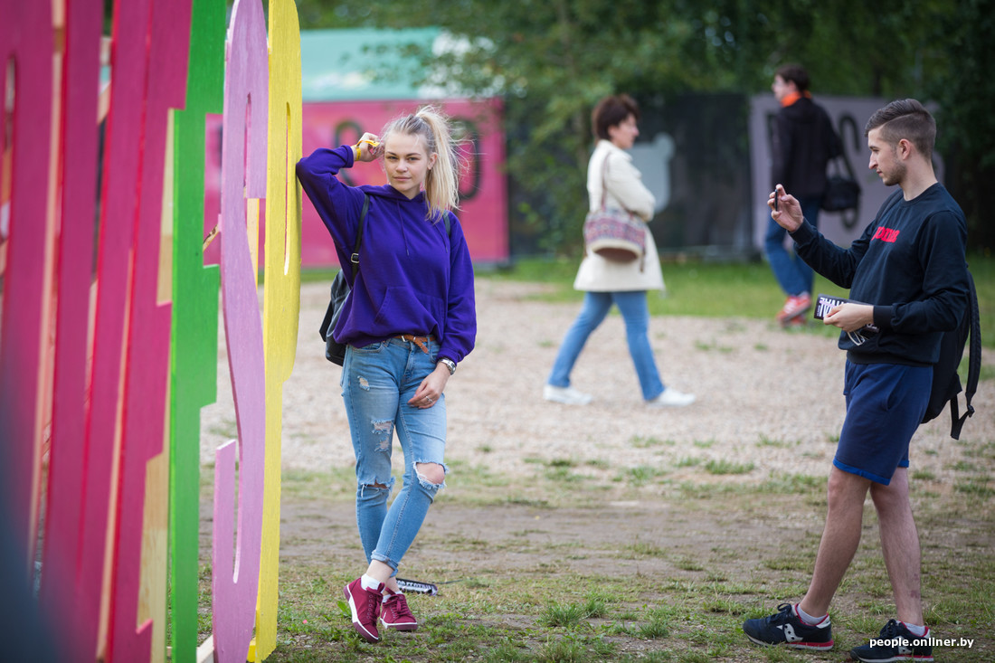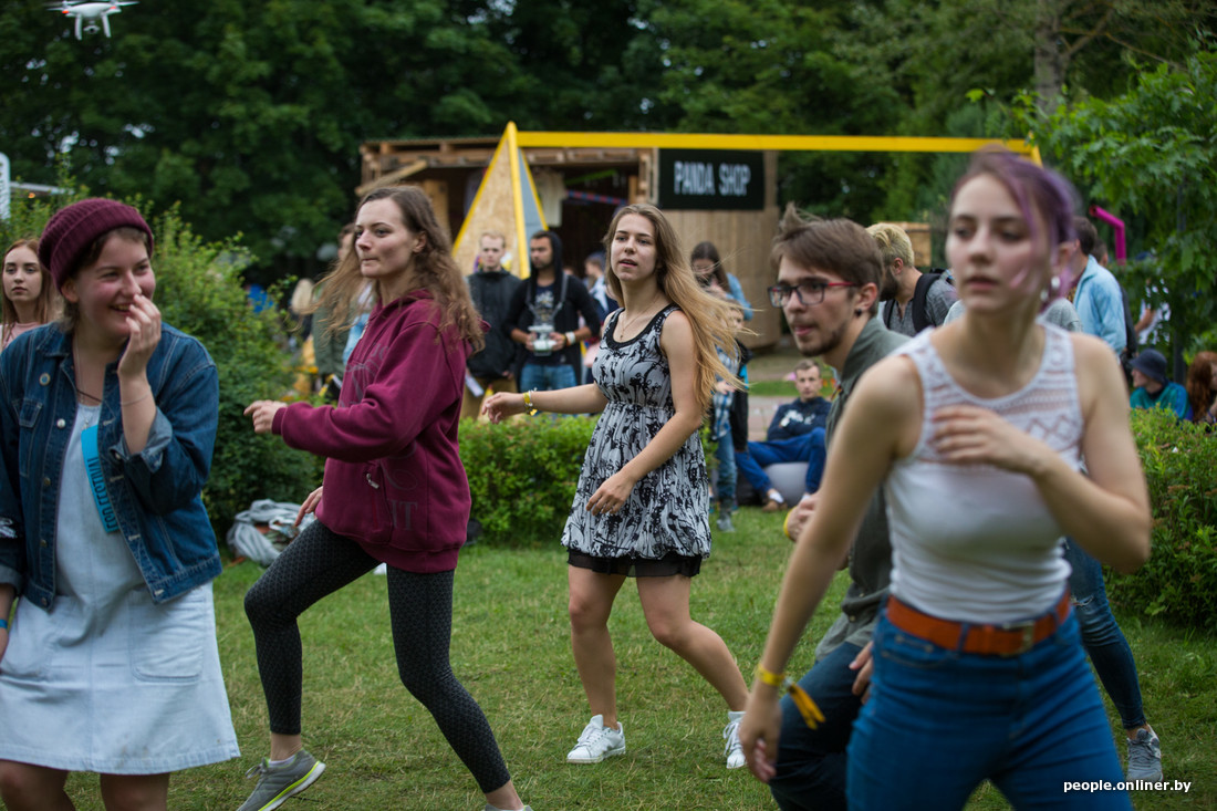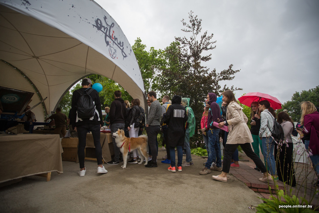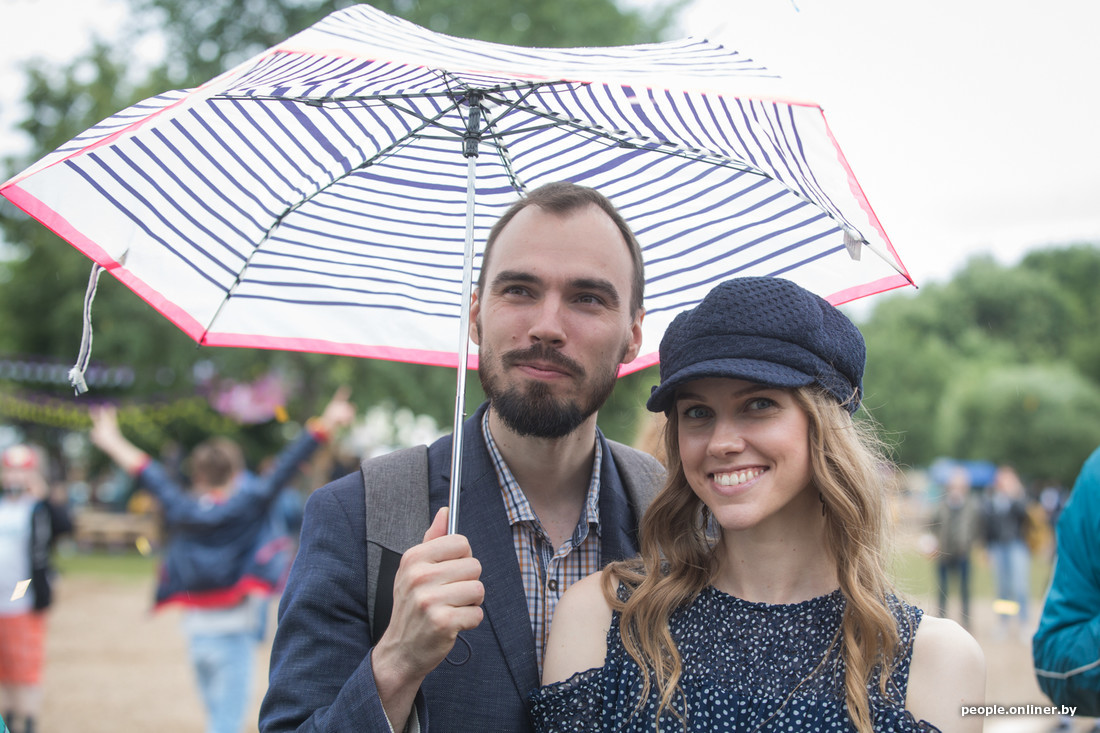 — Сегодня, если честно, лениво было выбираться из дома: погода подпортила планы. Но все-таки выбрались и не пожалели! Приятно, что люди не испугались дождя и пришли. А к вечеру распогодится, и у главной сцены вообще, думаю, будет куча народа. Что понравилось мне на фестивале? Музыка интересная, хороший выбор кофе. У «Онлайнера» спот с майками крутой. Очень хочется отметить, что рисунки классные: не просто с лейблом, а действительно интересные. Думаю, люди будут носить, — рассуждает минчанка с редким именем Альдона.