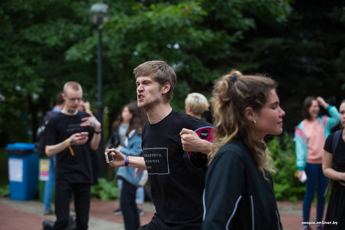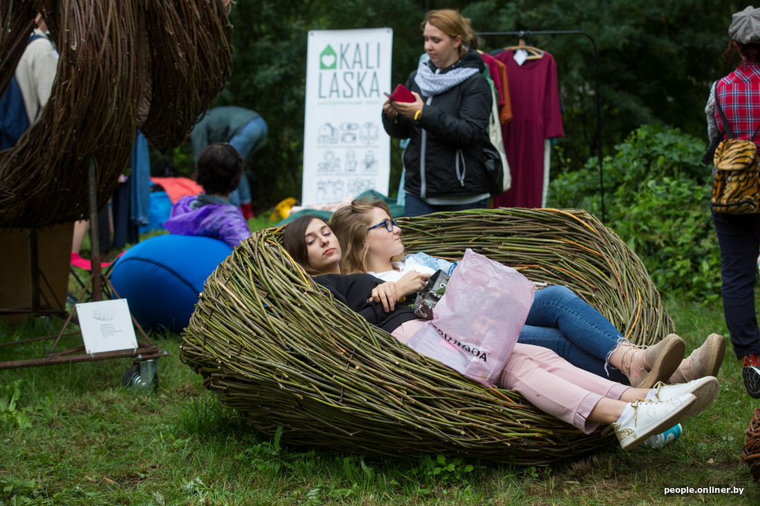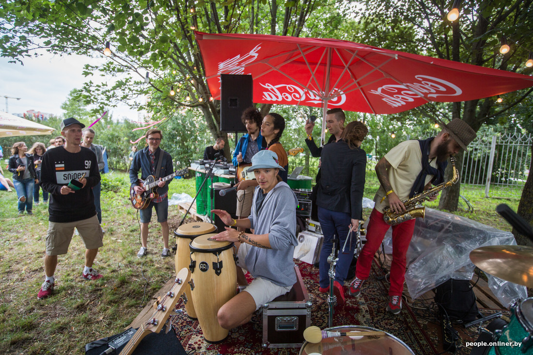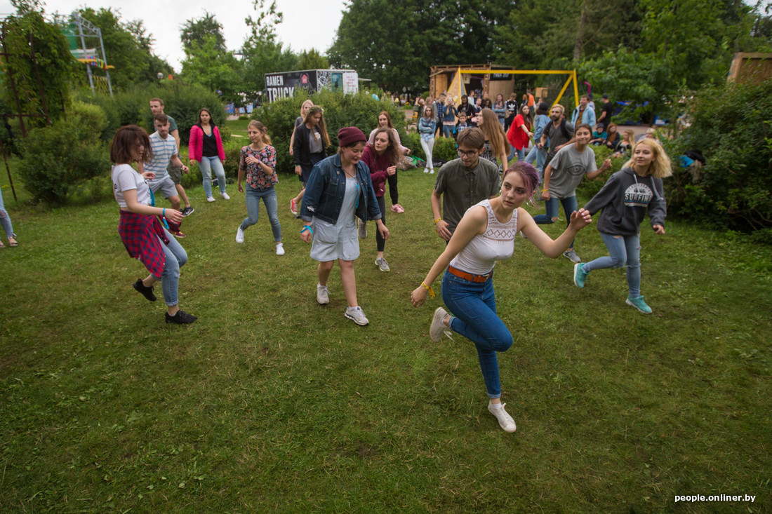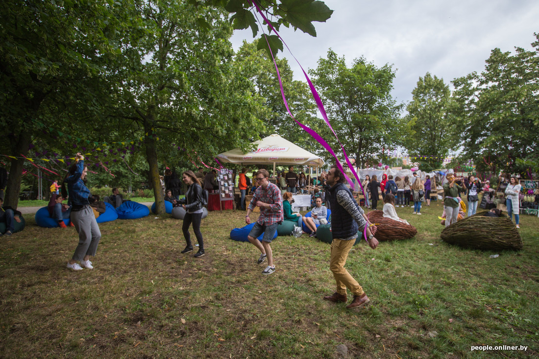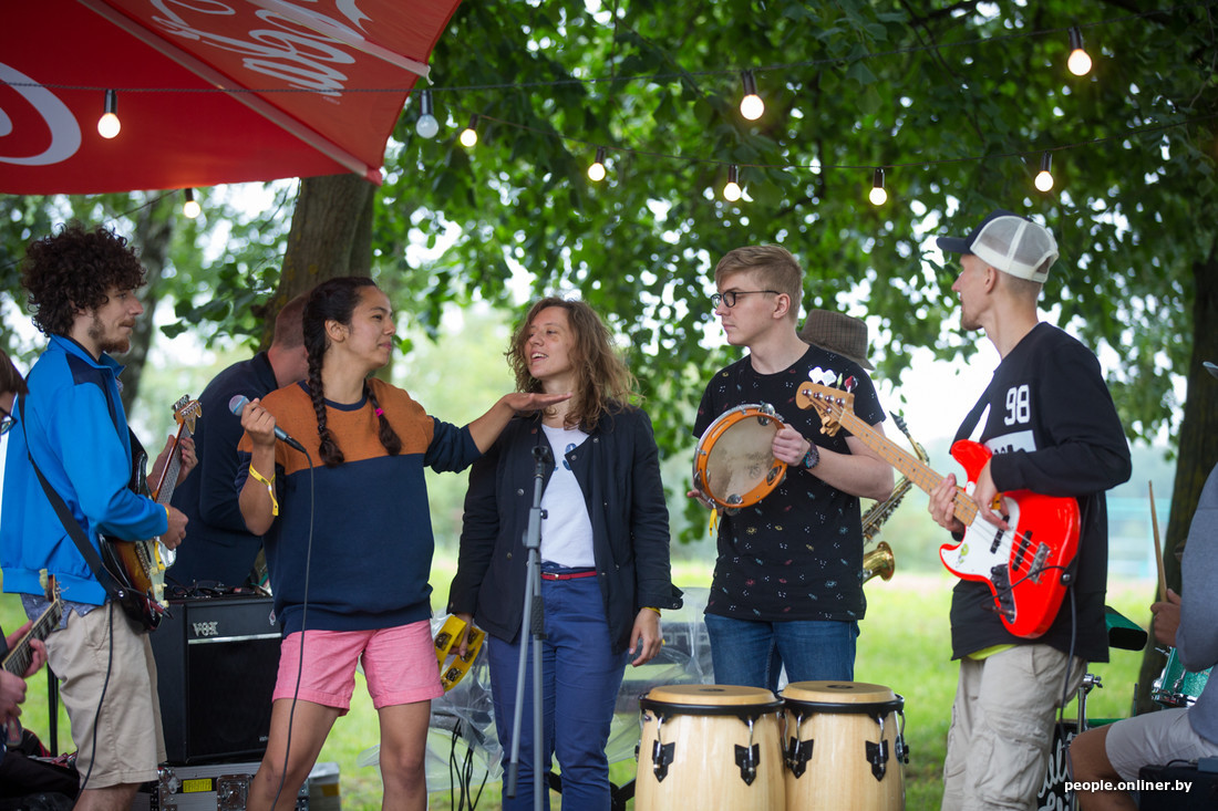 — Сегодня, если честно, лениво было выбираться из дома: погода подпортила планы. Но все-таки выбрались и не пожалели! Приятно, что люди не испугались дождя и пришли. А к вечеру распогодится, и у главной сцены вообще, думаю, будет куча народа. Что понравилось мне на фестивале? Музыка интересная, хороший выбор кофе. У «Онлайнера» спот с майками крутой. Очень хочется отметить, что рисунки классные: не просто с лейблом, а действительно интересные. Думаю, люди будут носить, — рассуждает минчанка с редким именем Альдона.