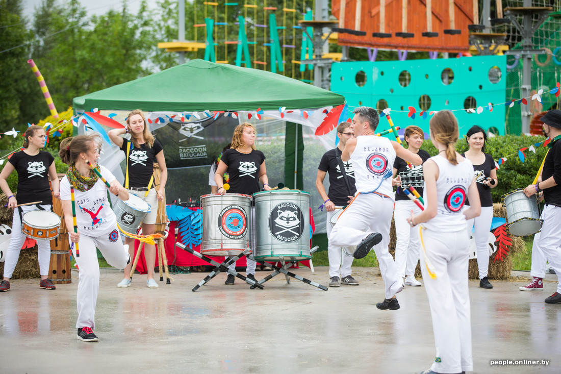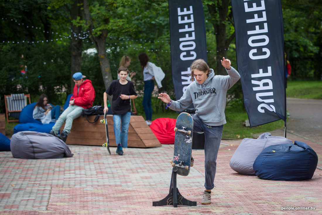 К шести часам вечера дождь медленно, но верно затихал, парковку «Дримлэнда» заполнили машины в три ряда, а людей на дорожках фестиваля становилось все больше. Музыка тоже как будто набралась уверенности — зазвучала громче. Селфи выстреливали со скоростью нескольких сотен в минуту. Умные спикеры развлекали гостей образовательной платформы Edutainment. Шкворчание бургеров становилось ароматнее с каждым часом. «Я познакомился с козлом [на самом деле человеком в костюме козла — прим. Onliner.by], и он дал мне голубой шарик», — радостно приветствовал журналистов минчанин Витя. Очевидно, фестиваль набирал обороты.