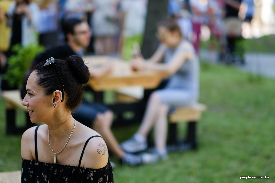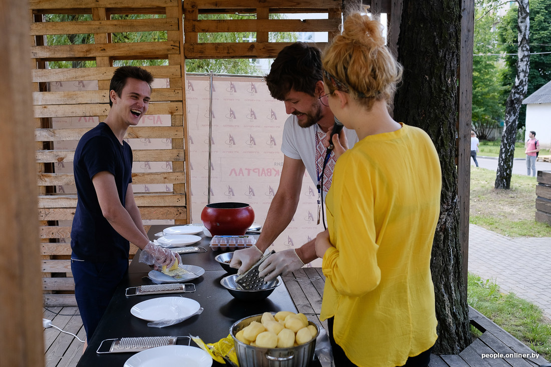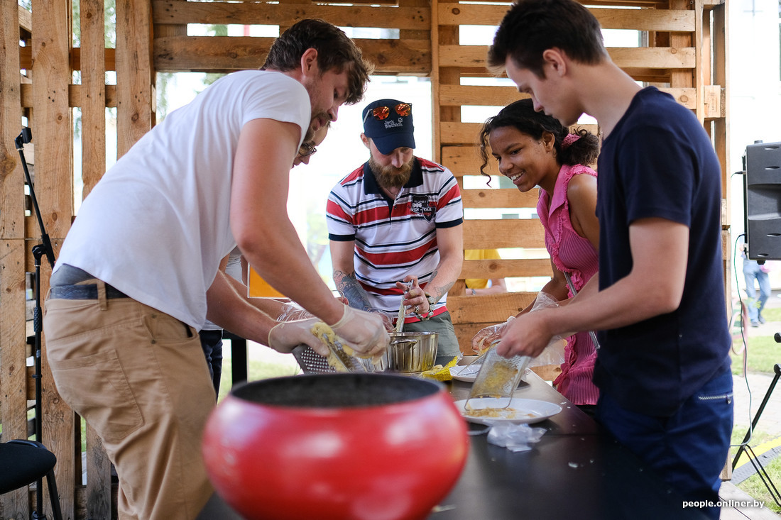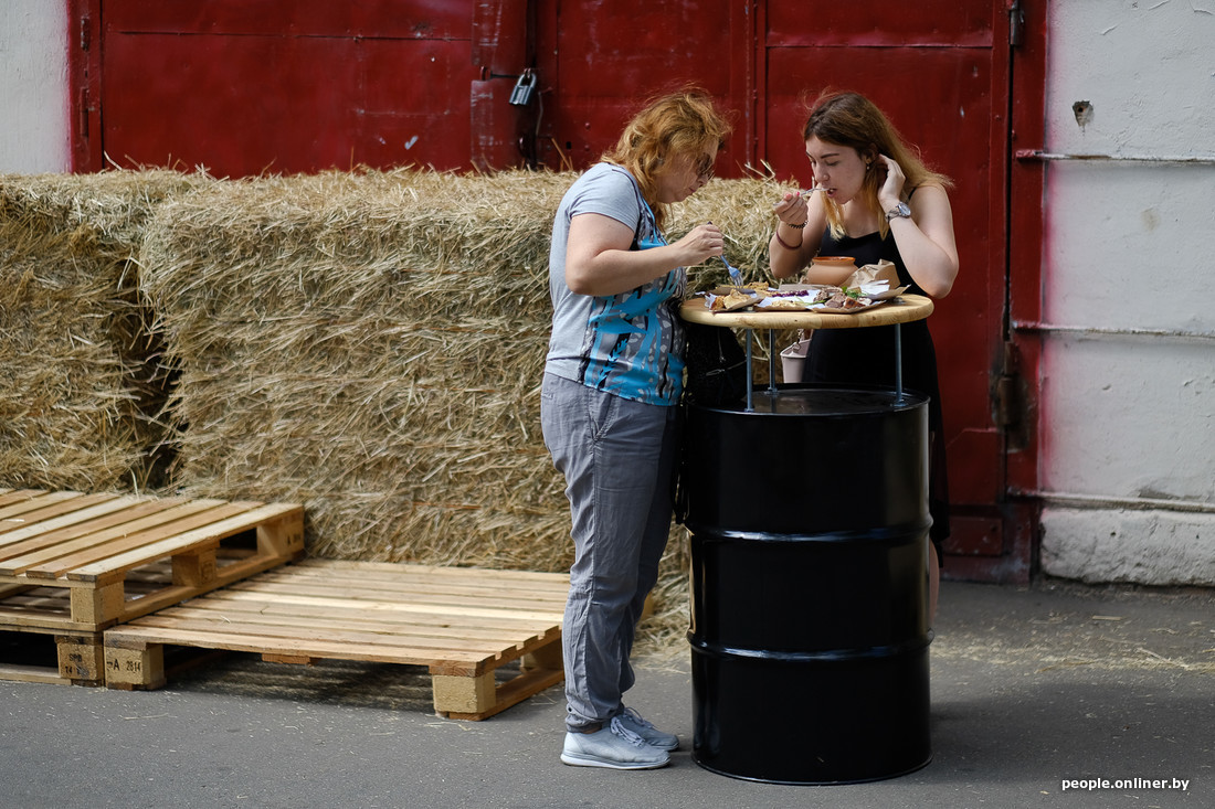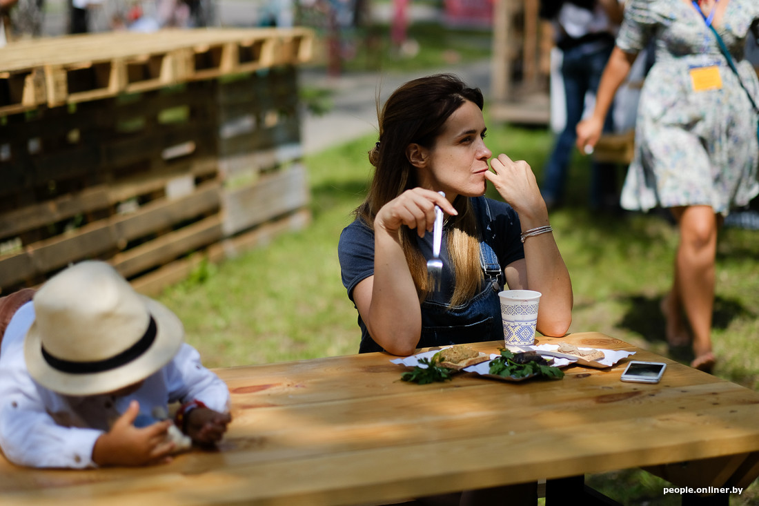 — Что еще важно понимать про «слоуфуд»? Это готовка из экологичных местных сезонных продуктов, что у нас практически нигде в общепите не соблюдается. Потому что сезон в Беларуси достаточно короткий — с июня по октябрь, а потом сезона нет ни на что, кроме как на колбасу (улыбается. — Прим. Onliner.by). Мы ухватываем это время. Например, для фермерской лавки мне специально привезли ультрачистую картошку из Брестской области, которую не обрабатывают вообще ничем. Свеклу, сельдерей, зелень собирали по друзьям. У нас же аграрная страна, все это можно найти, а потому обидно, что в сезон белорус покупает огурцы в супермаркете, когда в деревне просто не знают, куда их деть! — с чувством замечает Ксения. — Мы все делаем за свой счет. Я вчера поменяла последние $50 из своей заначки. Даже вход на фестиваль бесплатный. Мы не можем найти спонсора. Потому что те компании, которые согласились нам помочь, не вписываются в нашу систему. Например, производитель сладкой газировки — это не наш формат.