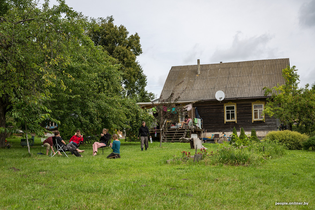 На самом деле никакой это не остров — обычная белорусская деревня, откуда человек уто́пал искать лучшей доли. Сейчас кажется, что жизнь здесь была всегда. Кристиан с друзьями из Германии сидит под яблоней и хохочет над очередной байкой, каких здесь рассказывают тьму. Босоногая мелочь бегает по траве и пинает пластиковую бутыль с водой — не планшетом же развлекаться, честное слово.