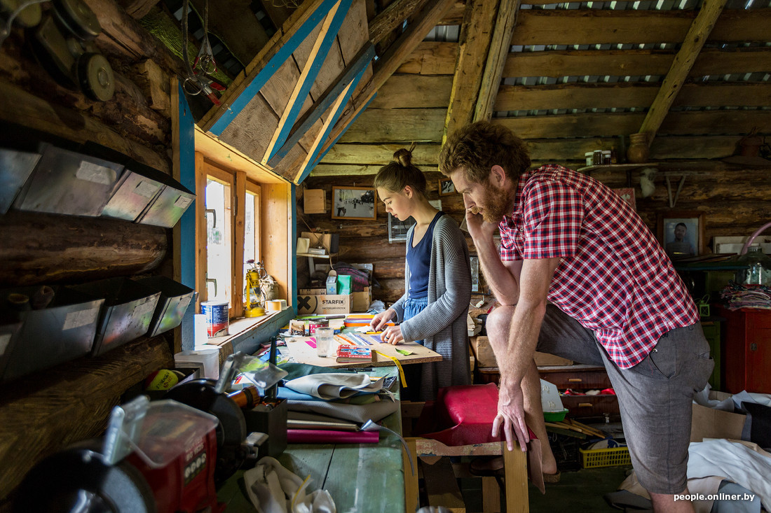 — Я тогда вообще ни о какой деревенской жизни не задумывался, — говорит Матвей, перекидываясь с косматой мелюзгой парочкой фраз по-немецки. — Просто детство мое прошло в Новолукомле, а там было много таинственных историй про Белую Церковь. Мол, альпинистка где-то там разбилась и вообще место странное. Но за все детство я в этой деревне так и не побывал, а тогда решил: надо съездить на машине. Приехал. Осмотрелся. И тут мимо мужик проходит: «Хочешь дом купить? За $1000 продаю». А я как раз получил гонорар за съемки клипа «Ляпису Трубецкому» — $1500. А за предыдущую работу купил резину на Subaru за $700 и мобильный телефон за $300. И вот я сижу и думаю: здесь резина и телефон, а здесь целый дом. Взял и купил его.