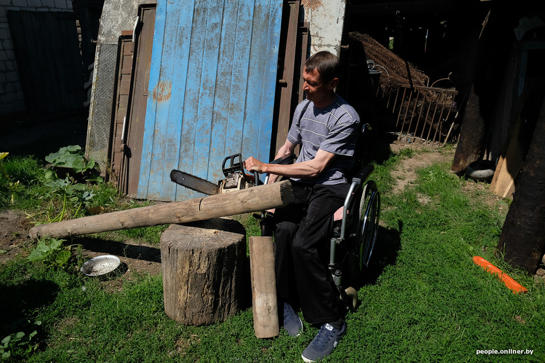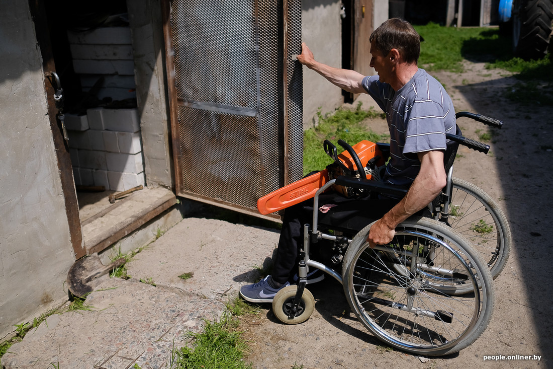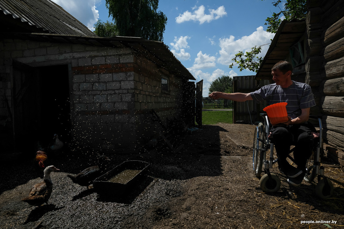 Сегодня Петр Зеленковский, по обыкновению, встал в пять утра. У него не один огород — картошка, пшеница, овес, свекла, кабачки, да еще две коровы, поросята, куры, утки, дрова нужно колоть, зерно молоть… Обычная жизнь белорусского мужика с натруженными руками. С одной такой «маааленькой деталюшечкой» — у Петра двойной перелом позвоночника, уже десять лет он в коляске.