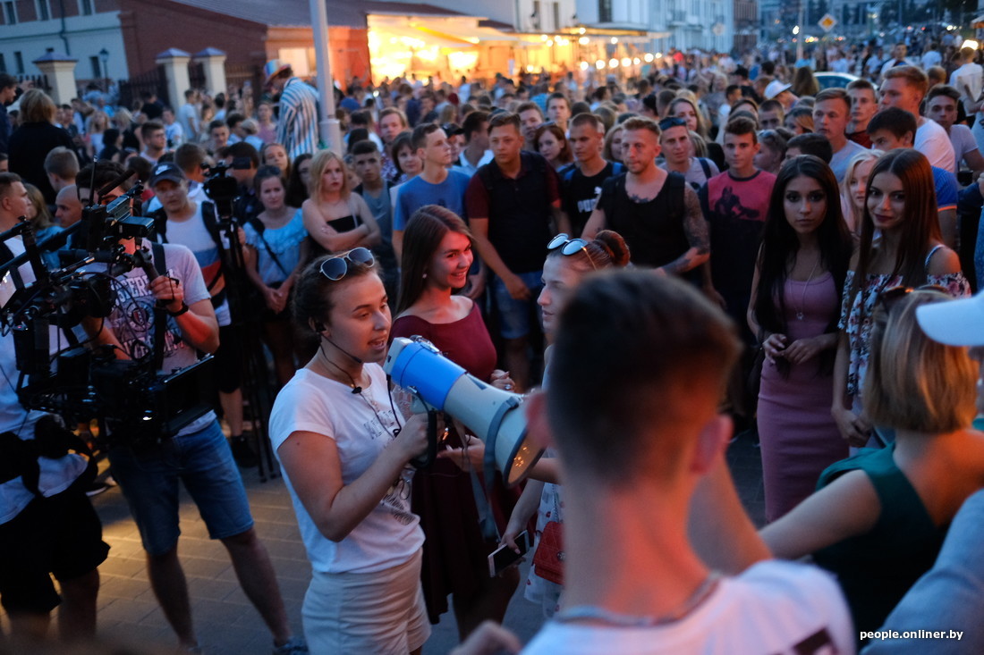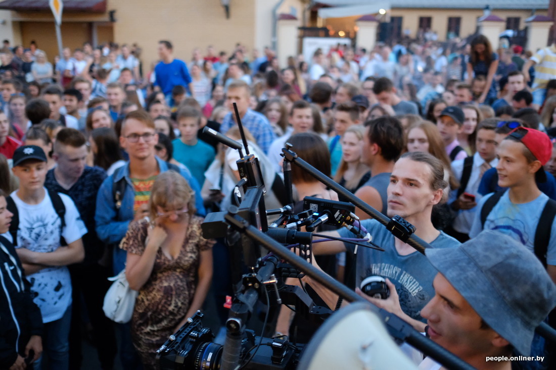 «…Туда, где бит подбивает на движ, музыка в центре с баров шумит. В голову залетает мотив, его уже не остановить», — чеканит слова Макс Корж в своем новом треке под названием «Оптимист». Чтобы обеспечить гарантированный «движ» во время съемок очередного клипа, самый популярный белорусский певец выбрал минские локации — улицу Зыбицкую и Октябрьскую, а своих поклонников пригласил поучаствовать в съемках с помощью постов в Instagram и «ВКонтакте». Затея удалась: несколько сотен подростков собрались сегодня вечером на главной барной улице Минска. Подробности — в небольшом репортаже Onliner.by.
