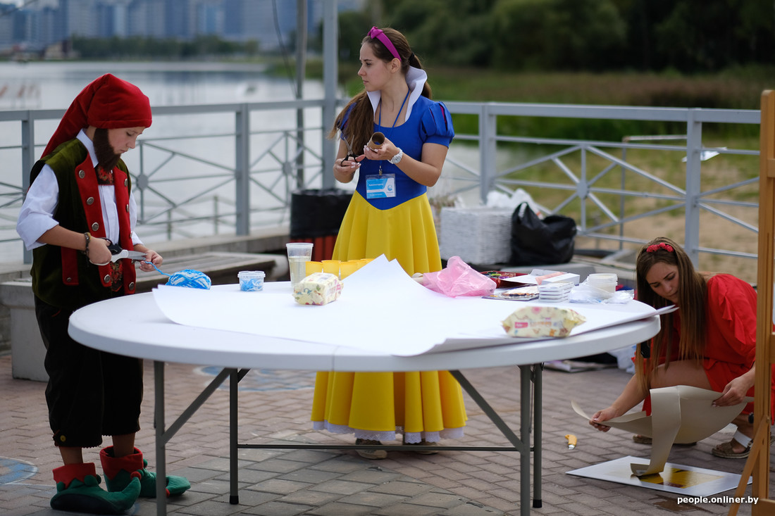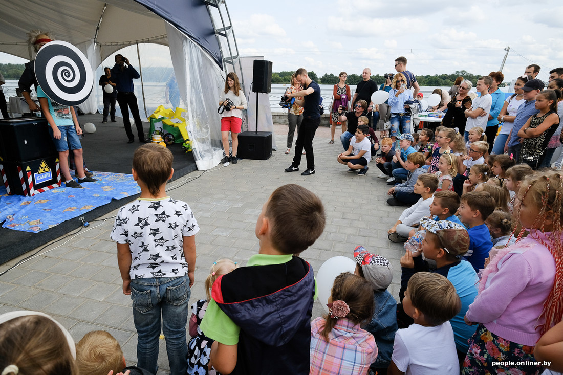 На пирсе в белом шатре отдыхали семьи с детьми. Вход был только по приглашениям. Пока модный ведущий Виталий Воднев готовился начать церемонию, гостей развлекали Шерлок Холмс и доктор Ватсон.