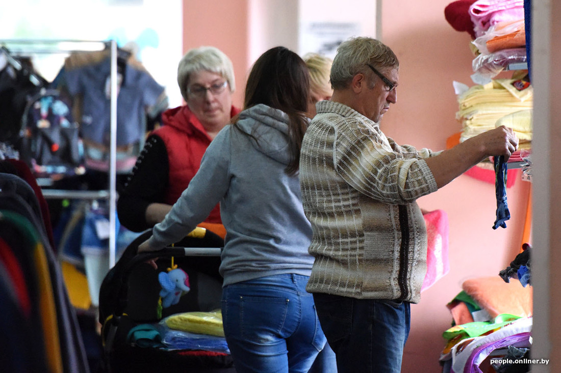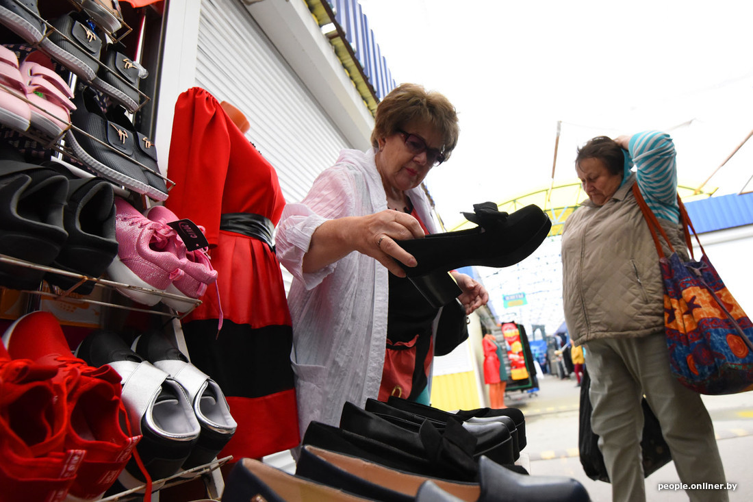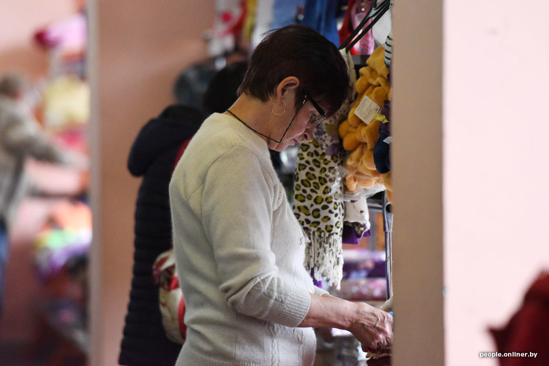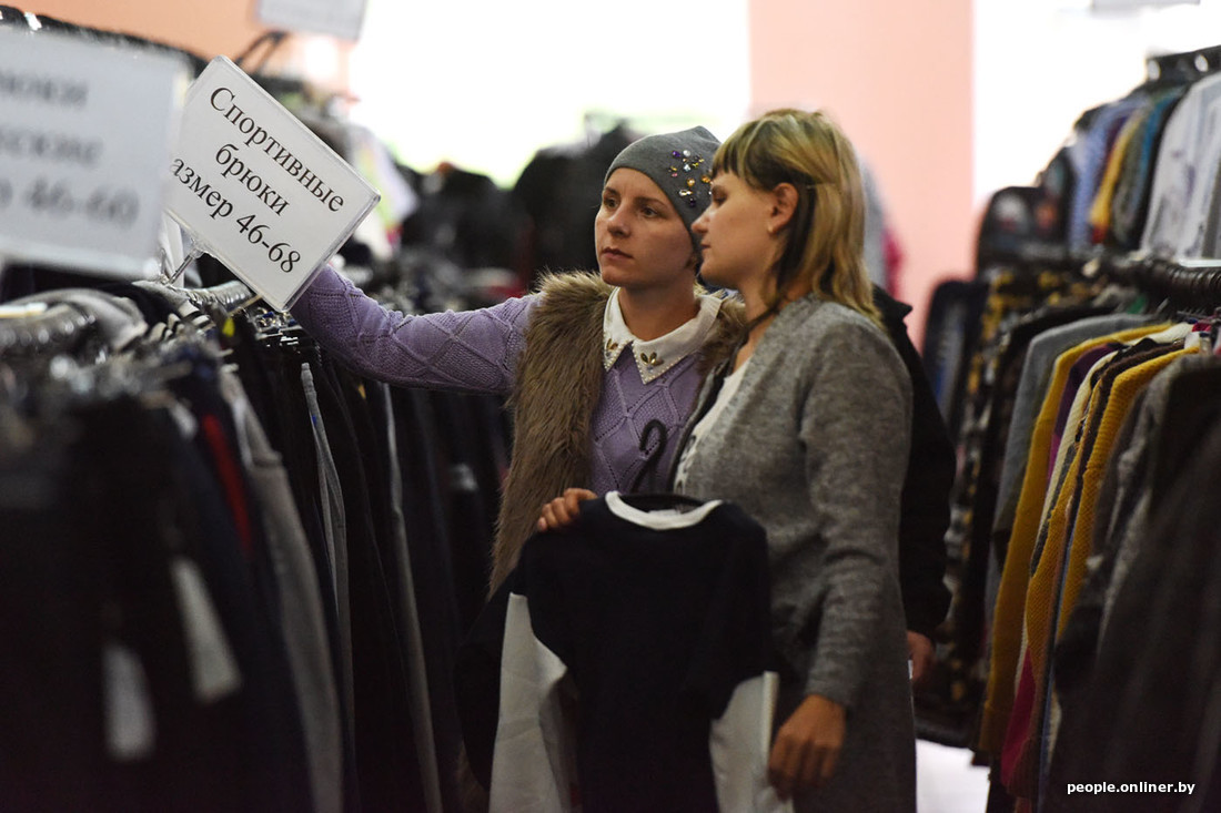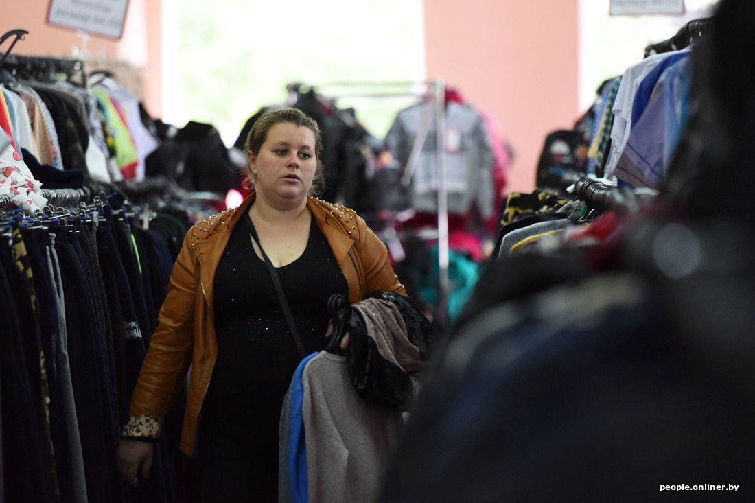 Внутри ничего лишнего, только вешалки с одеждой да стол с небольшим кассовым аппаратом, как в маршрутке. За обстановкой наблюдает молодой узбек, с десяток белорусов перебирают одежду. Майки, штаны, куртки щедро увешаны ярлыками на любой вкус. Такое ощущение, что тут недавно прошлась мощная проверка, оставив кучу предписаний.