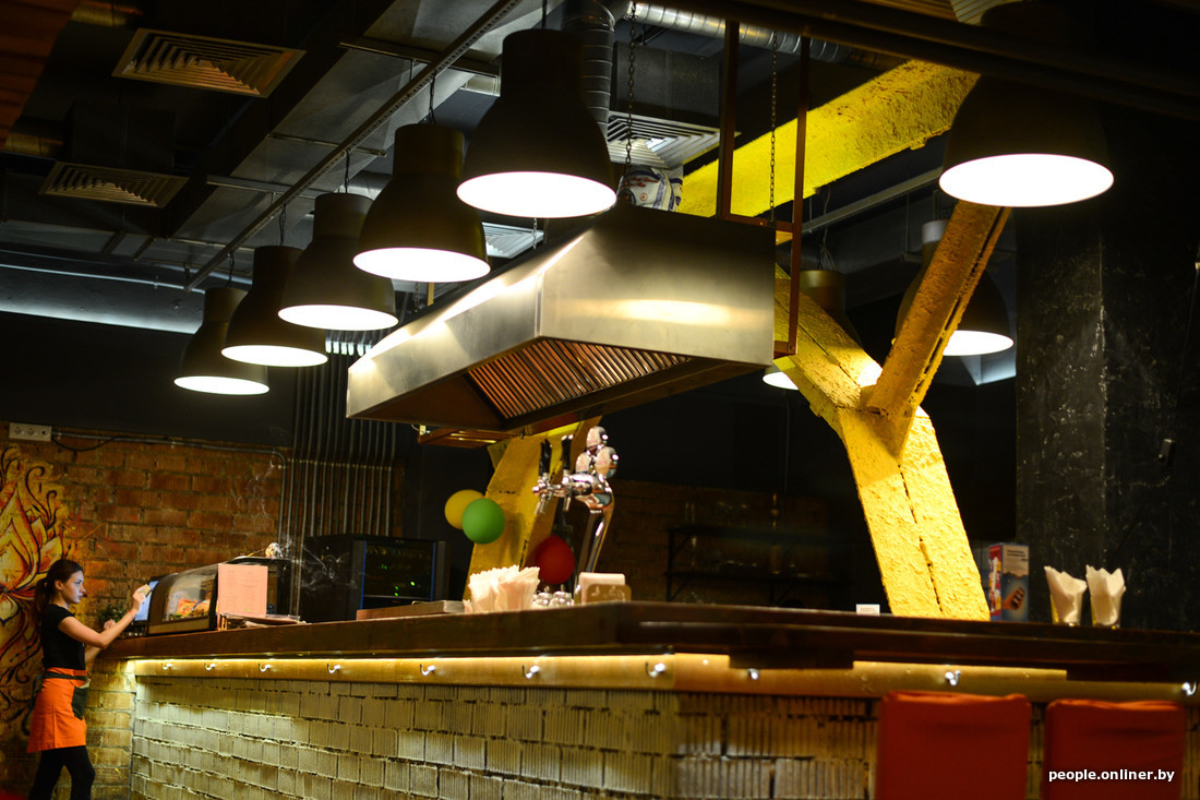 На барной стойке мы замечаем кеги с пивом. Бикаш говорит, что продажа алкоголя — вынужденная мера. Раньше в бистро его не было — до того момента, как посетители не стали приносить свой алкоголь на дни рождения и корпоративы.