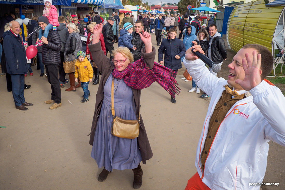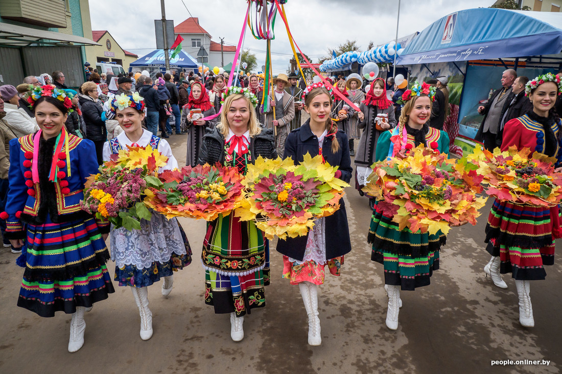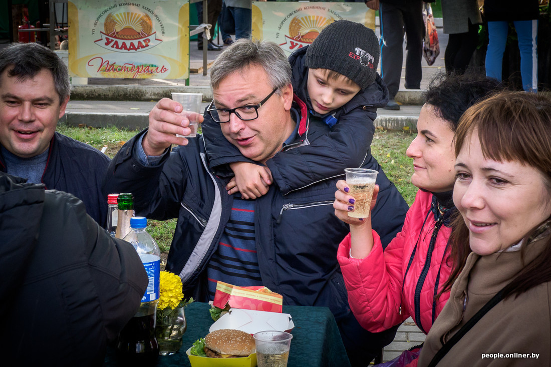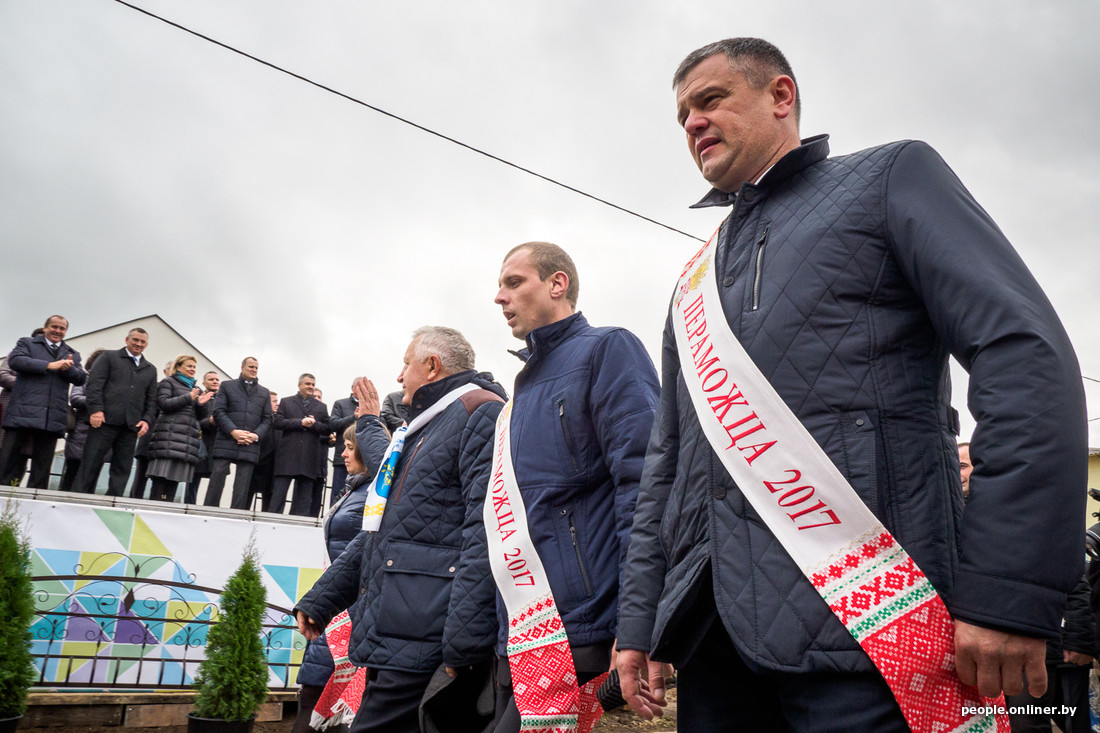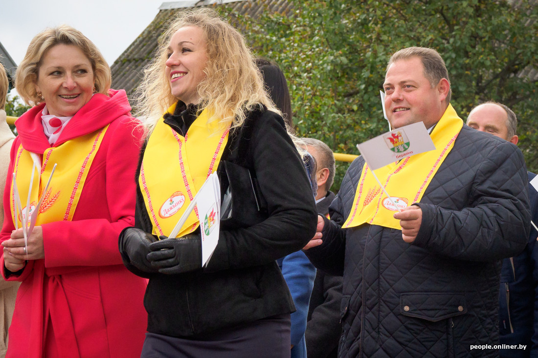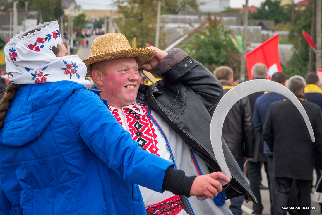 «Ну-ка, покажите, как председатель колхоза танцует», — заводит толпу ведущий у палатки «Белтелекома». Молодые и не очень барышни подмигивают пареньку и активно крутят бедрами под Desposito. На главной сцене рассказывают про достижения белорусских агрономов и тяжкий труд хлеборобов. А герои праздника в новых костюмах и со жмущими шею галстуками потихоньку сбегают к шашлычным палаткам. Там под традиционное «будзем» закидывают по сто грамм беленькой.
