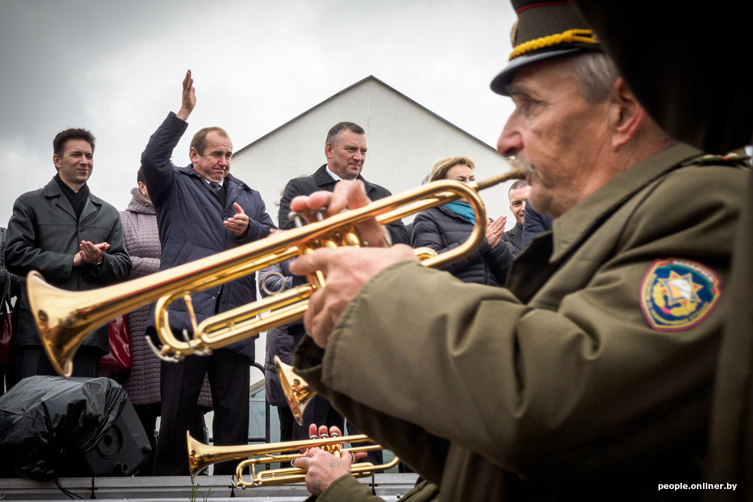 Дальше на трибуне машет рукой районное и областное начальство. Кроме них здесь заместитель председателя Национального собрания Марианна Щеткина и помощник президента по Минской области Игорь Евсеев.