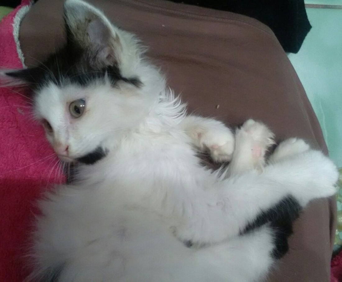 — Котенок был напуган, весь мокрый, замерзший. Мы привезли его домой, отмыли, накормили. Теперь он грустит, потому что муж на работе, а меня на всех не хватает: маленький ребенок, кот, собака и беременная кошка. Мы прекрасно понимаем, что никто не обязан забирать этого котенка у нас и мы всего лишь можем его кому-то предложить, но ситуация такая, что…