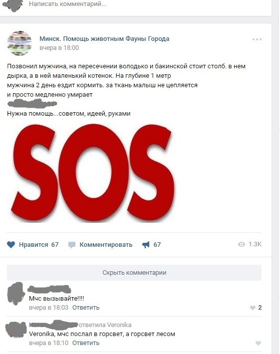 Буквально прошлой ночью Женя и ее муж достали из полости осветительного столба котенка, крики о помощи которого несколько дней обсуждали во «ВКонтакте».