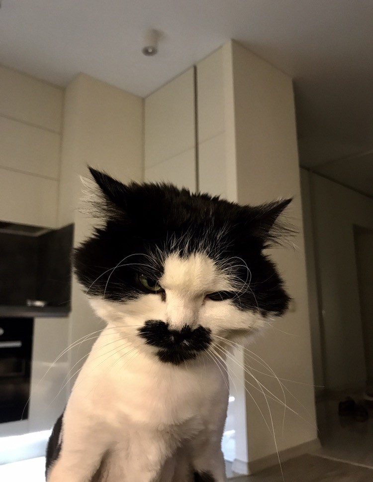 — Вообще, никогда и не подумал бы, что у меня дома будет жить кот. До него были только собаки, к котам всегда относился хорошо, как и к любым другим животным, подкармливая дачных. Однажды на участок пришел кот. Просто пришел, лег рядом с мусорным ведром и начал его охранять от других дачных котов и кошек. Весь в шрамах, хромой, худой, с больной лапой. Животное было подлечено, подкормлено и в итоге отказалось куда-либо уходить. Постепенно к нему привыкли, отмыли, пустили в дом и забрали с собой в квартиру в Минске — куда ж уже от него было деться? Тем более что животное оказалось исключительно разумным и воспитанным. Постепенно кот поправился и набрал немного веса, —пишет Евгений про Басурмана.