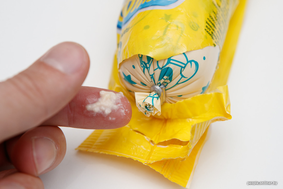 С вареной колбасой ситуация аналогичная (потому вареная колбаса — это большие сосиски). Разве что «Смешарики» чуть не рассмешили. Оставшийся в хвостиках оболочки фарш завернули в пленку. Вероятно, поэтому он не высох, а конкретно «загулял». Но почуяв (буквально) неладное при открывании желтого пакета, не торопитесь отчаиваться: сама колбаса в норме.