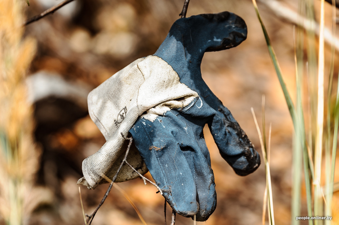 Периодически находим следы недавнего пребывания людей: хозяйственные перчатки, даже костюм химзащиты…
