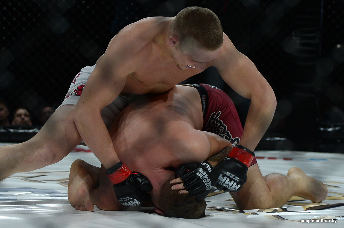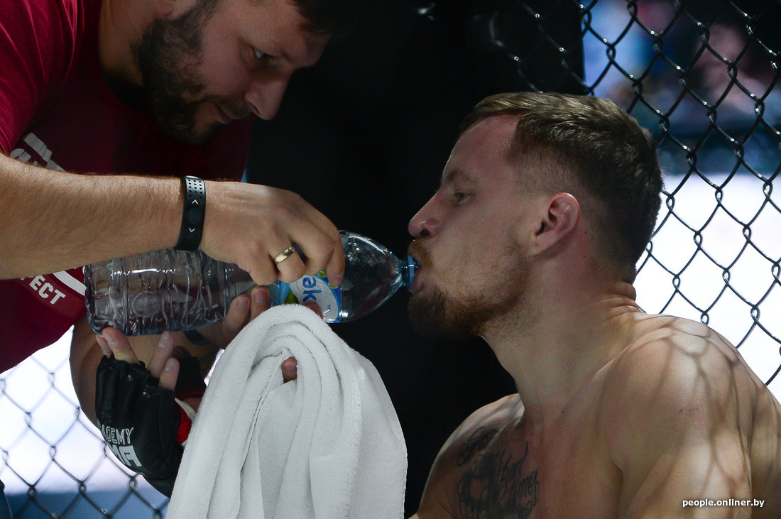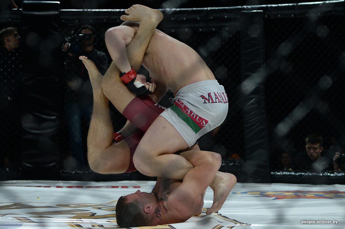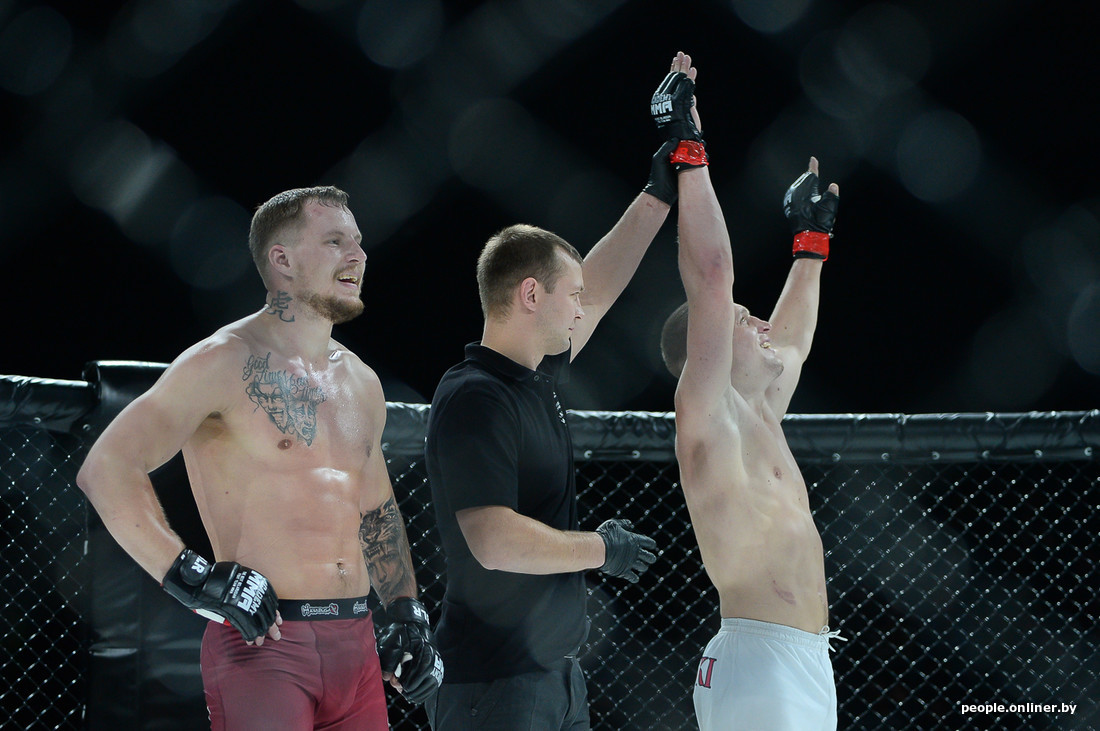 В этом самом октагоне впервые для Беларуси был проведен бой в формате два на два. Наши были против не наших из Украины и, к сожалению, проиграли.
