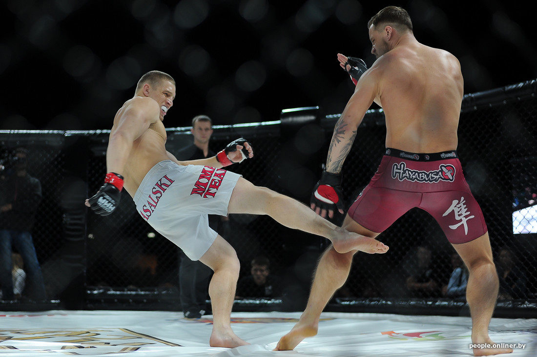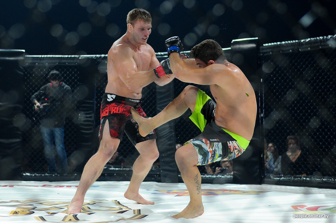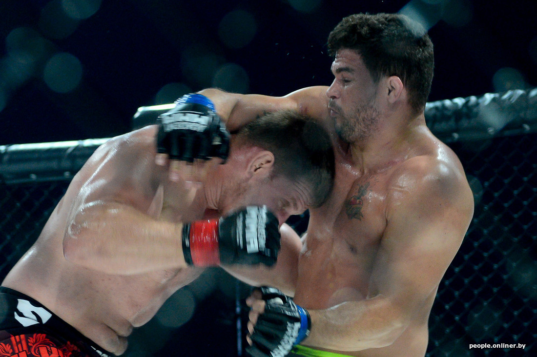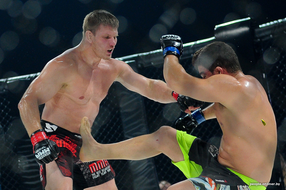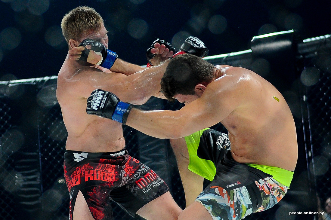 В этом самом октагоне впервые для Беларуси был проведен бой в формате два на два. Наши были против не наших из Украины и, к сожалению, проиграли.