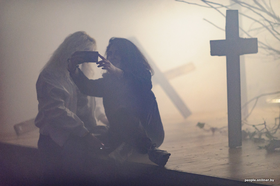 Густая мгла, кровь, кресты и свечи. Слабонервным сюда лучше не попадать. В пространстве «Вверх» прошла масштабная вечеринка в честь прошедшего Хэллоуина. Опоздавшие отметить праздник вовремя могли насладиться мистикой в тумане. О том, как минчане веселились до утра, смотрите в репортаже Onliner.by.
