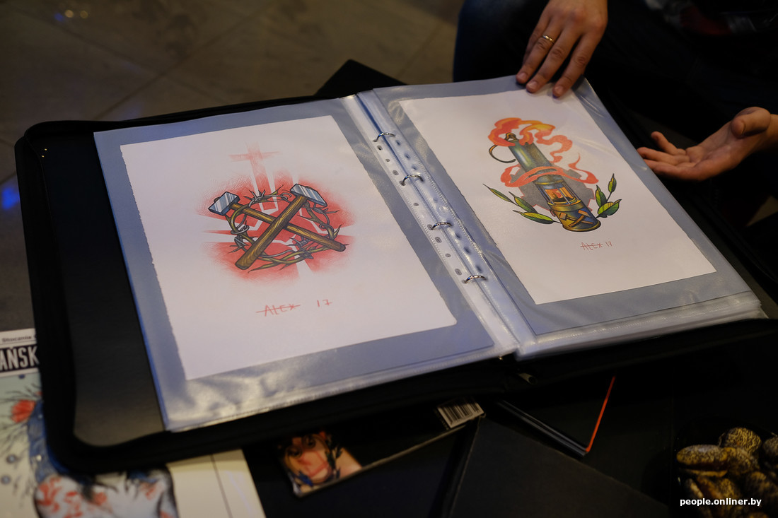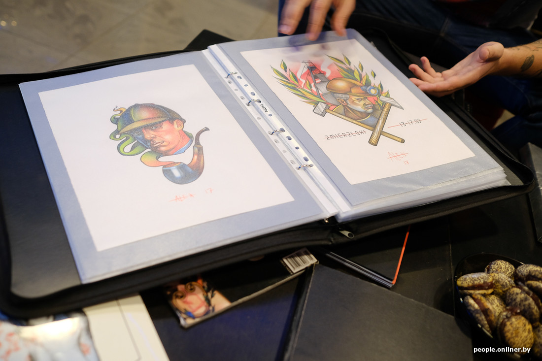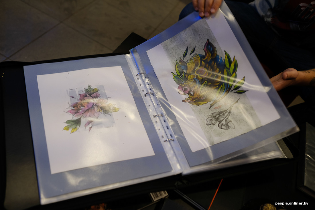 Приходят совершенно обычные люди. Как-то была женщина лет 70. Говорит: «Это моя пятая татуировка». Были дедушки в возрасте. Главные клиенты — ребята лет тридцати. Субъективно — у них лучше с деньгами, чем у белорусских сверстников.