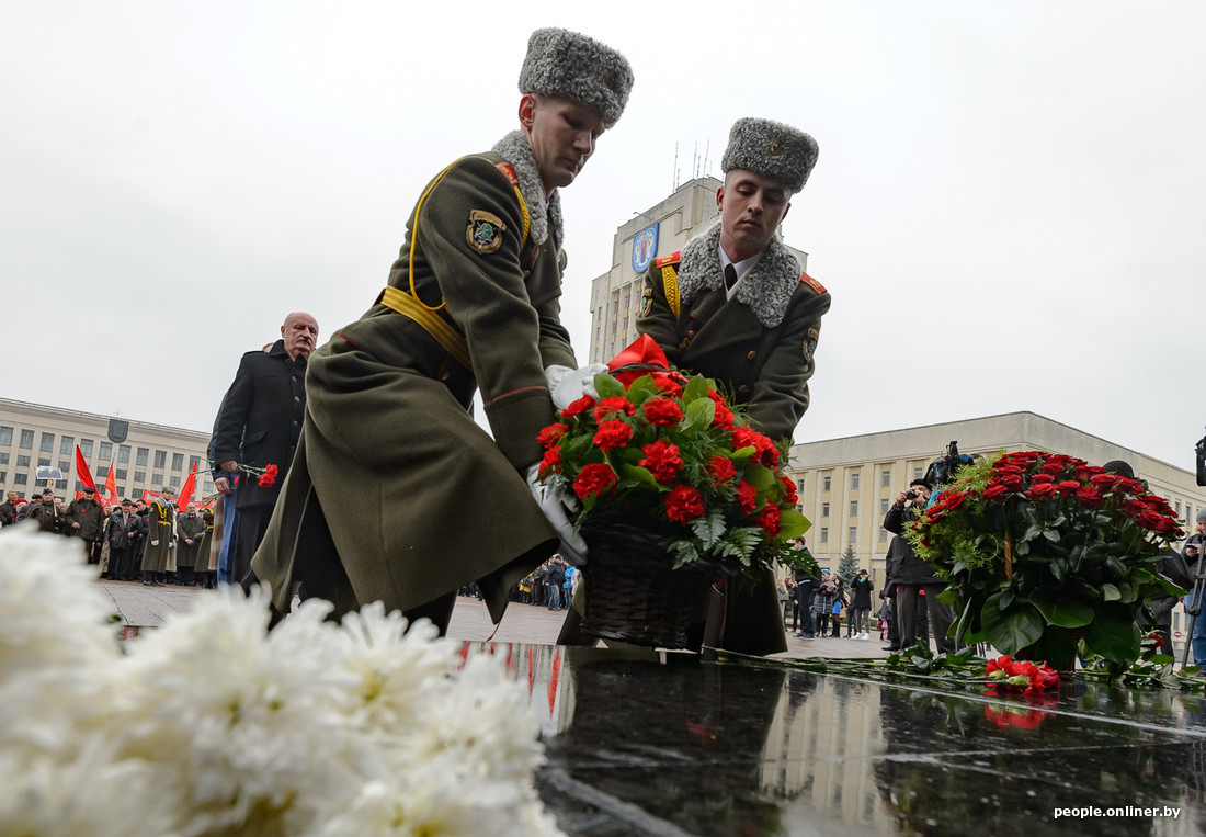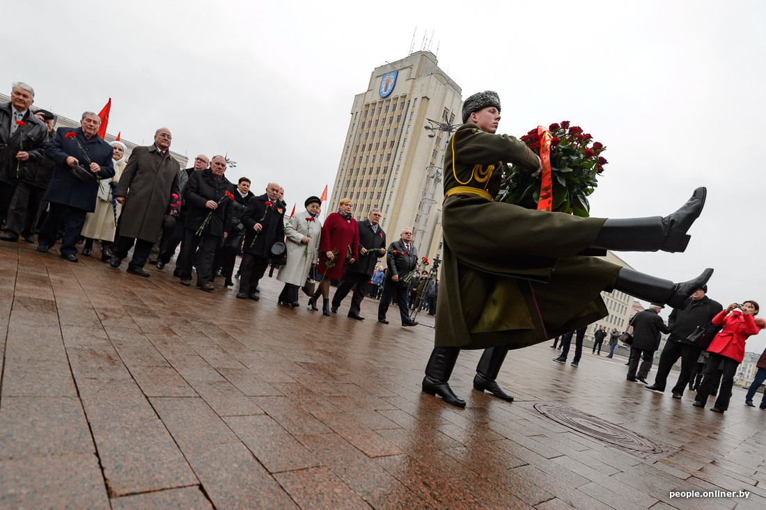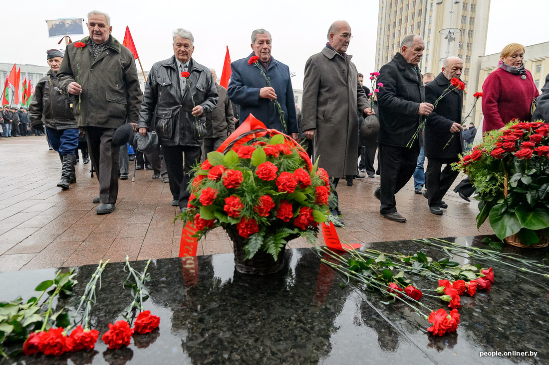 Группка коммунистов и поддерживающих их сегодня пришла на площадь Независимости возложить цветы к памятнику Ленина. Пожилые люди несли красные флаги с серпом и молотом, фотографии своих предков, делавших революцию, и традиционные гвоздики. Молодежь улыбалась, делала селфи на фоне поздравительных плакатов. Остальная столица вот уже третий день наслаждается выходными. Подростки катались на скейтах, в кафешках веселились ребята постарше. А их родители деловито сновали по магазинам и сельхозярмаркам. О том, как все это было, смотрите в нашем фоторепортаже.