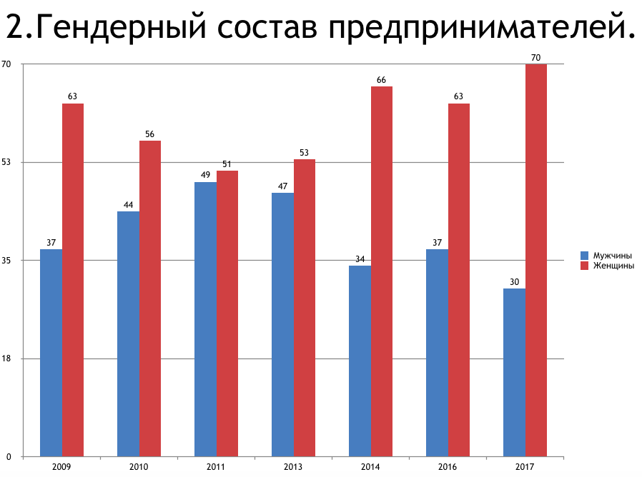 — К сожалению, мы уже много лет как отмечаем, что индивидуальными предпринимателями становятся в основном из-за вынужденных обстоятельств (48%). По призванию в бизнес пришли 28%. Фактически в 90-е годы предпринимателями стали учителя, милиционеры, врачи, инженеры и так далее. Те люди, которые не имели возможности зарабатывать по-другому, — отмечает Шумченко. — Подобный показатель заимствован из опросника GEM-индекса, проводимого последние 15 лет в более чем 80 странах. Он является одним из ключевых исследований в сфере предпринимательства. Так вот страны, где бизнес выбирают добровольно и по призванию, как правило, имеют более стабильную экономику.