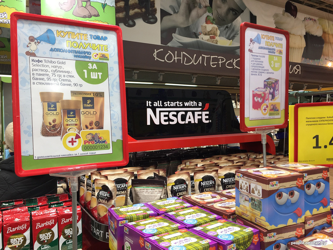 Напомним, каждые 15 рублей — 1 наклейка. В общем, покупка на 600 рублей — и игрушка ваша. Или можно купить банку кофе и получить дополнительную наклейку. Нет терпения, а хочется — на «Барахолке» вовсю торгуют наклейками. Рыночная цена — 1 рубль за штуку.