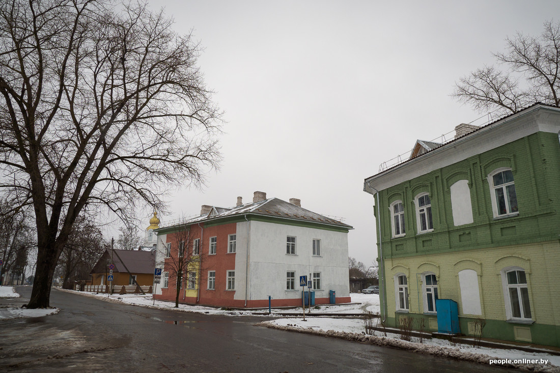 Мы идем мимо главной местной достопримечательности — развалин земской больницы 1902 года постройки. Когда-то больницу, вроде бы находившуюся на балансе православной церкви, хотели реконструировать, но, к сожалению, не смогли. Ходить здесь опасно, ограждения нет. Белорусская стабильность — пальмы стоят крепко: