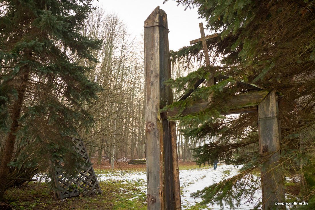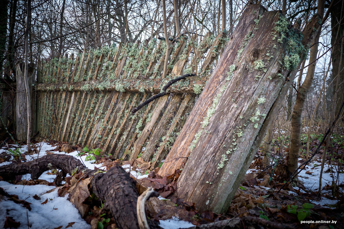 В большой деревне Каменполье вечером пусто, люди сидят по хатам. Вот крадется куда-то бабушка, укутанная в платок, с интересом смотрит на нас, разглядывающих охраняемую государством историко-культурную ценность. Может, думает, что мы желаем эту ценность купить?
