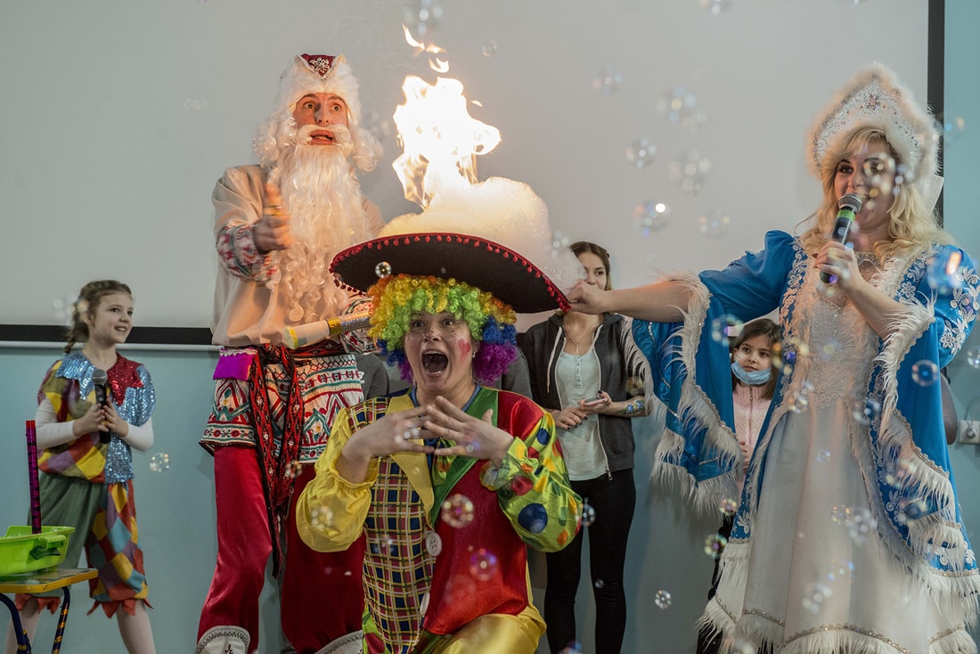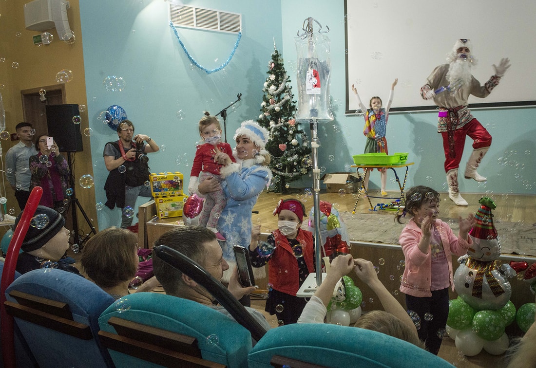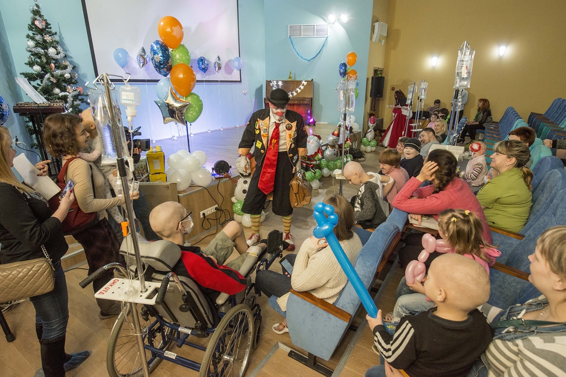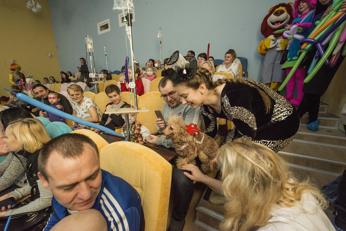 Клоун Паша Застенчивый и Тролль Розочка пользовались особой популярностью на концерте в онкоцентре. Успех у публики имела и «оленья упряжка» Деда Мороза — три карликовых пуделя, наряженных в «рогатые» костюмы. Зрителей отличали от любых других детей только капельницы — они торчали в зале, словно штыки маленького батальона: «Мы выиграем это сражение, слышишь, жизнь? Мы победим!»