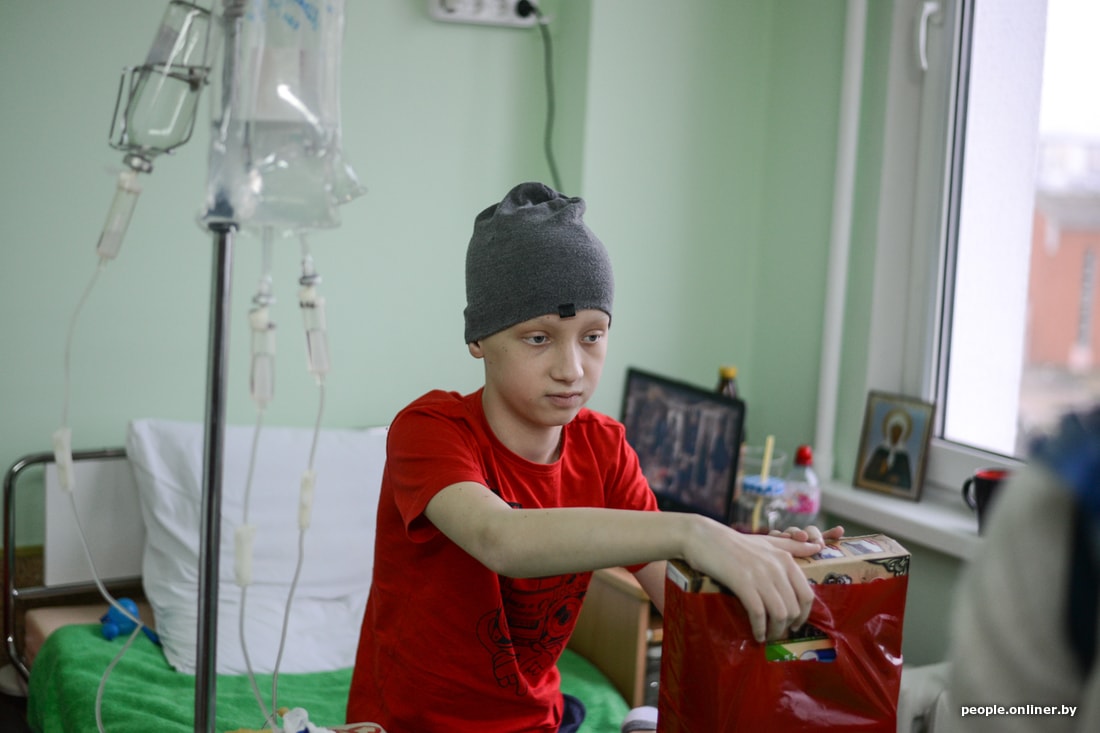 Из стерильного отделения трансплантации идем с подарками в обычные палаты. Никита из десятой попал в Боровляны в октябре. У него четвертая стадия рака головного мозга.