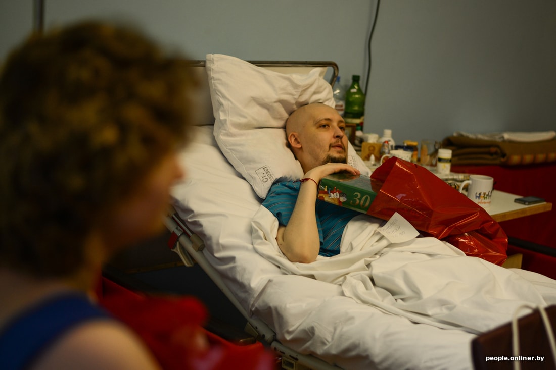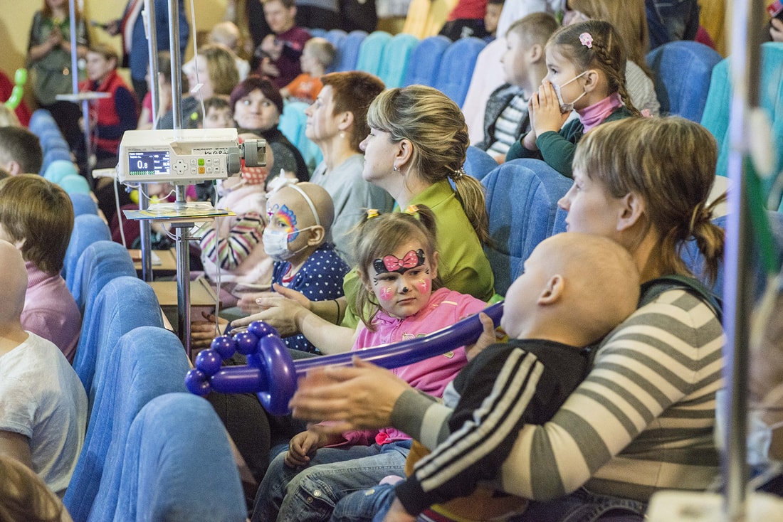 Пока клоуны веселили народ, семнадцатилетний Никита успел рассказать нам, что оказался в онкоцентре внезапно. Подумал, что отравился, а анализ крови сообщил нежданную новость — «лейкоз»: «Мне нужно учиться в школе, а не здесь время проводить. Что будет дальше? В июне у меня день рождения. До восемнадцатилетия я уже вылечусь. Иначе нельзя!»