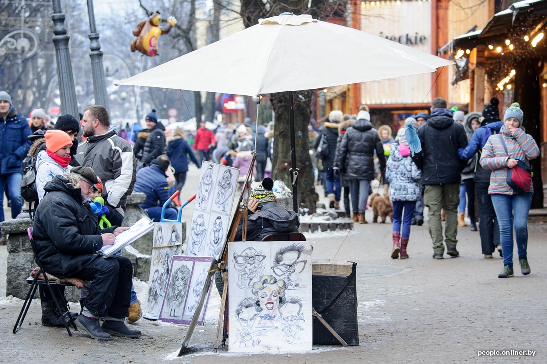 Зевак развлекают клоуны, медведи, черти. Половина рабочего дня позади, за фасадом туристических улыбок — крайне уставшие люди.