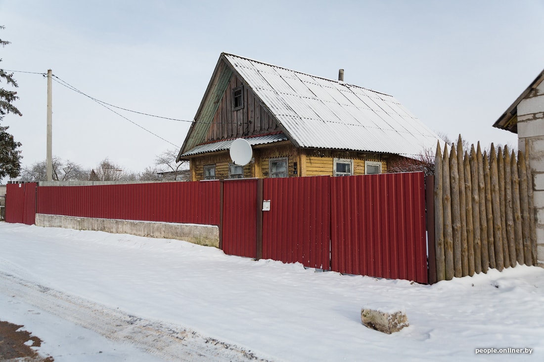 В поселке сплошь частные дома — штук пятьсот, по ощущениям. Нужный дом ничем не отличается от всех остальных: деревянная изба с контрастирующим забором из вычурного красного металлопрофиля, облезшей краской на деревянном срубе и фоновым собачьим лаем.