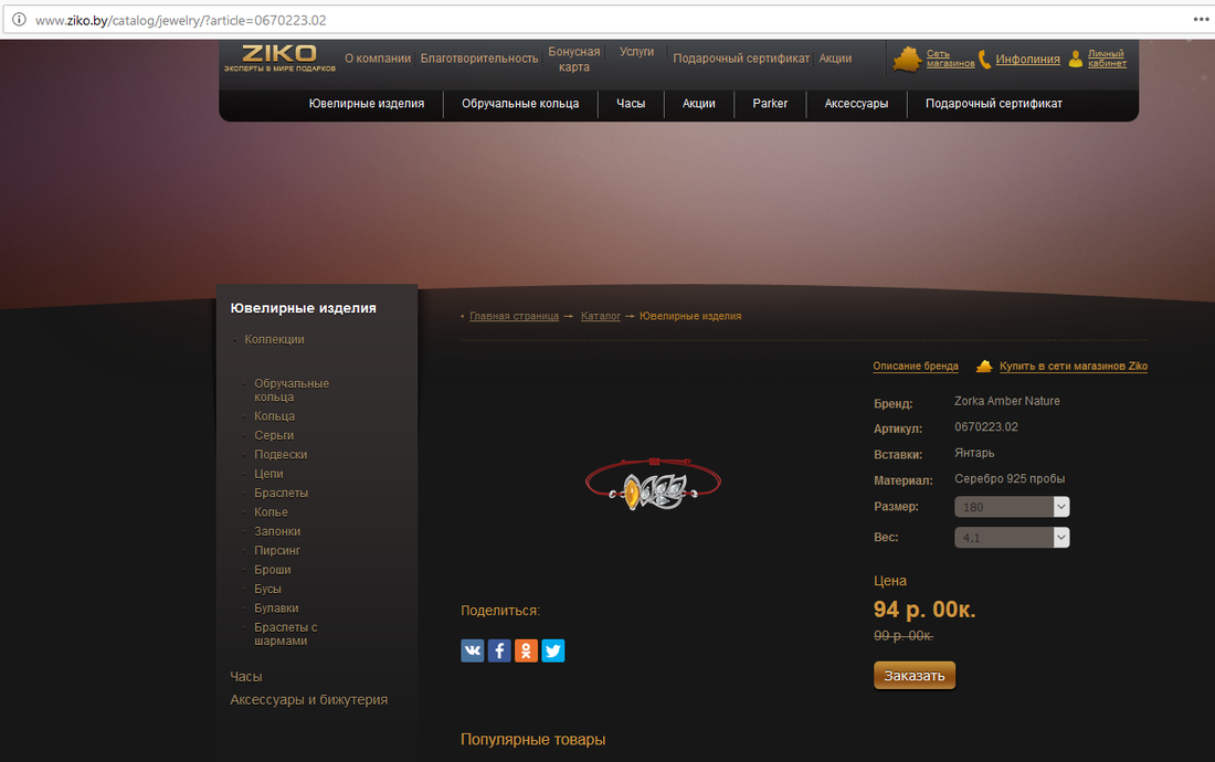 И вот опять луч подозрительности направлен в сторону распродаж. Все дело в том, что Виталий выбрал браслет в Ziko. «5 февраля этого года мне предложили вариант, прислав скриншот с официального сайта. Браслет стоил 80 рублей», — рассказывает парень. Через неделю молодой человек отправился в магазин и удивился акционной цене.