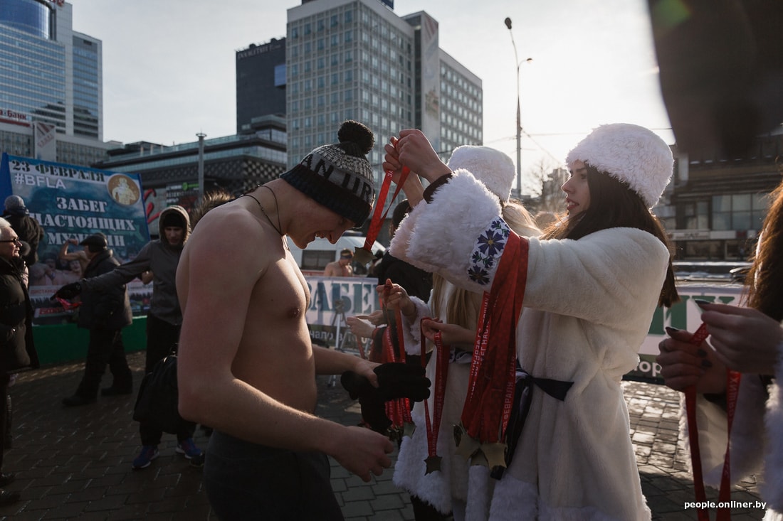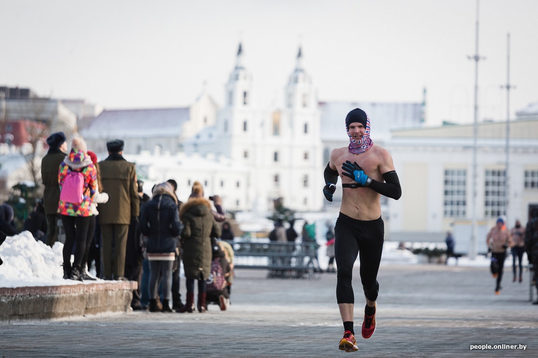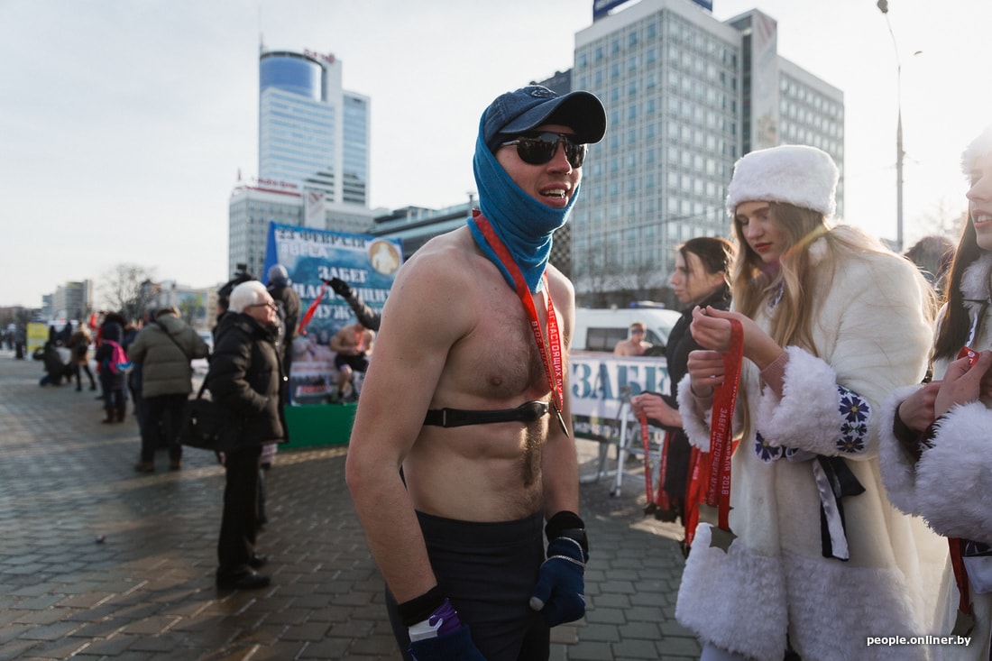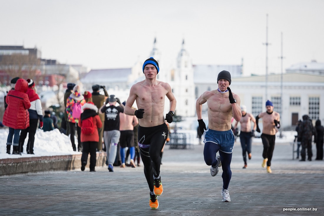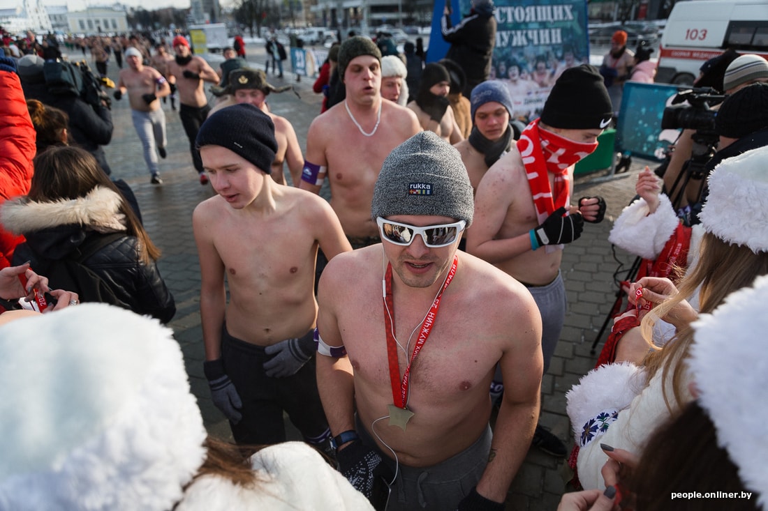 Мужчины бежали дистанции в 1 и 3 км. Всего поступило примерно 1200 заявок. В прошлом году — 1000. К тому же расширилась география участников. Помимо белорусов в забеге участвовали мужчины из Украины, России и Казахстана. Надеемся, никто из них не повезет на родину простуду.