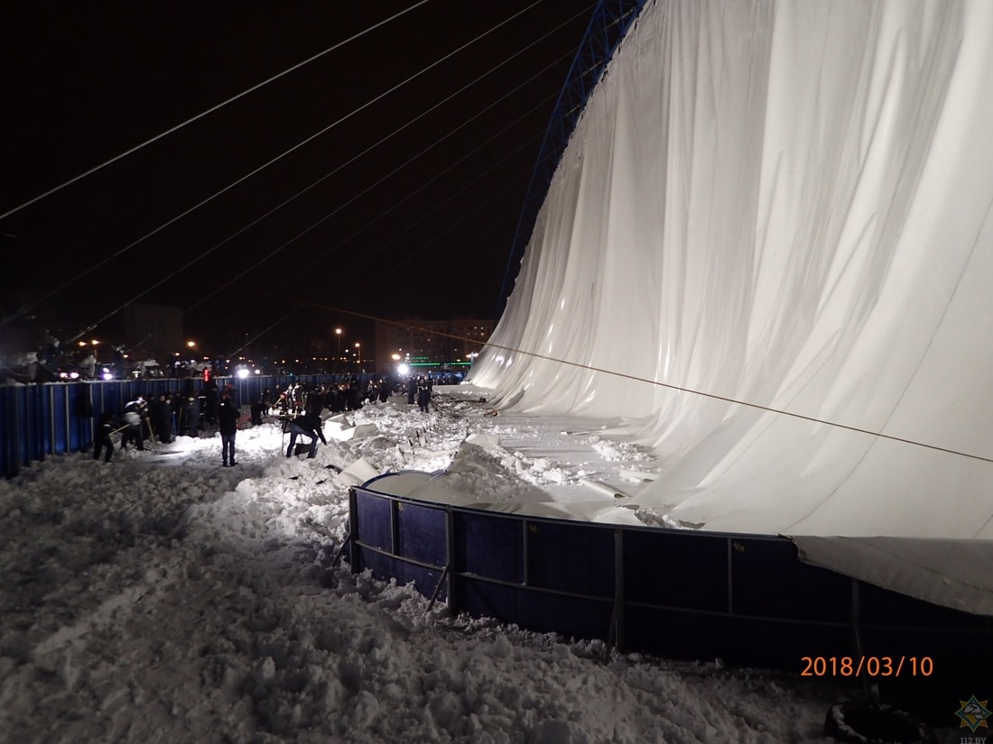 Сегодня вечером на сезонном катке в Гомеле под тяжестью снега обрушилась половина мягкой кровли. Под ней оказались люди, которые пришли на массовое катание. До прибытия спасателей пострадавших вытаскивали из-под придавленной снегом материи те, кто находился на второй половине катка. По данным МЧС, были доставлены в медицинские учреждения пять человек, в том числе двое детей.