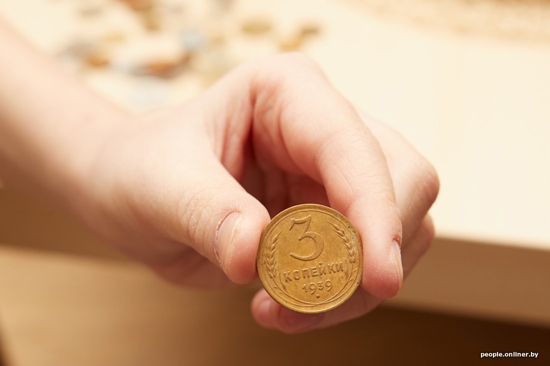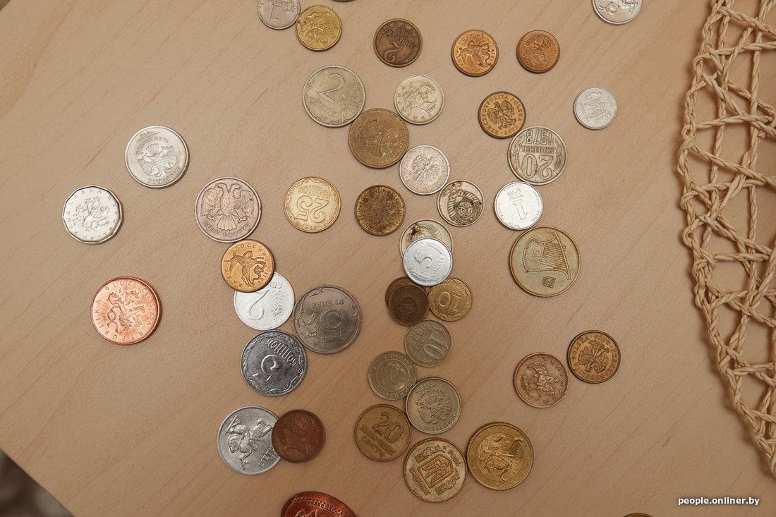 Леша демонстрирует украинские, израильские, польские и литовские монеты. Всего у него в копилке монеты из 12 разных стран. Самая старая из которых — советская — 3 копейки 1939 года.