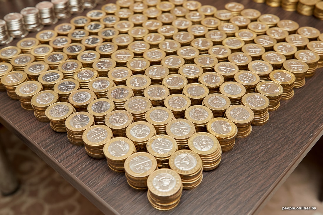 Двухрублевки, рубли, копейки звонко рассыпаются по столу. Начинаем сортировать монеты и выкладывать их столбиками по 10 штук.