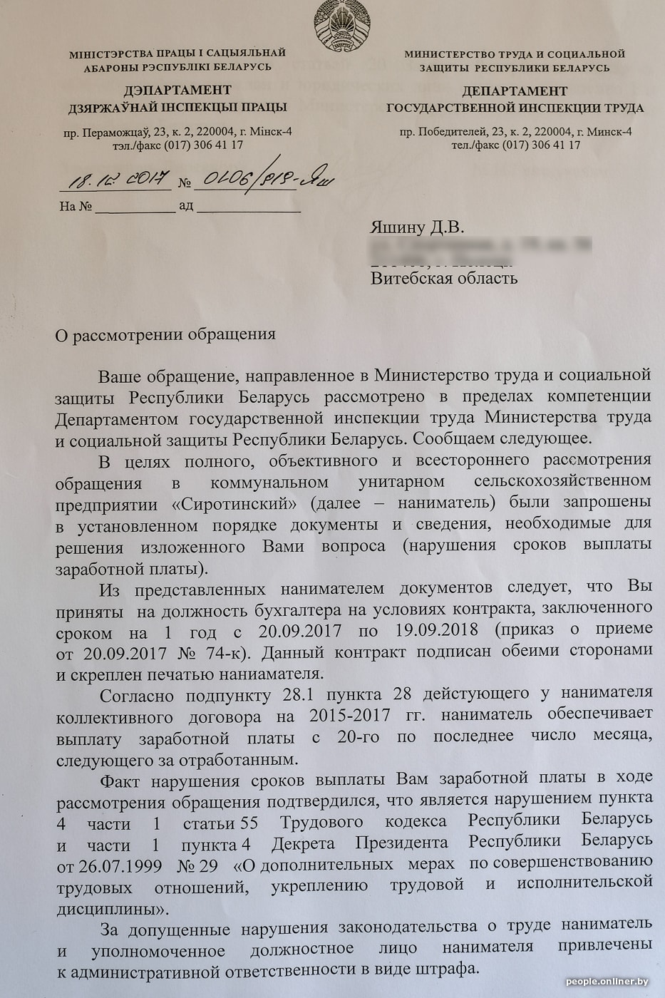 — Судья спрашивала у директора: «С чего вы взяли, что имеете право недоплачивать людям до минимальной зарплаты?» Он ссылался на постановление Совета министров №1506, согласно которому колхозы, у которых есть задолженность, платят 25% от выручки. Да, все так, они платят эти 25%. Но при этом нигде ни слова не сказано о том, что это разрешает им платить меньше «минималки», — объясняет Дима.