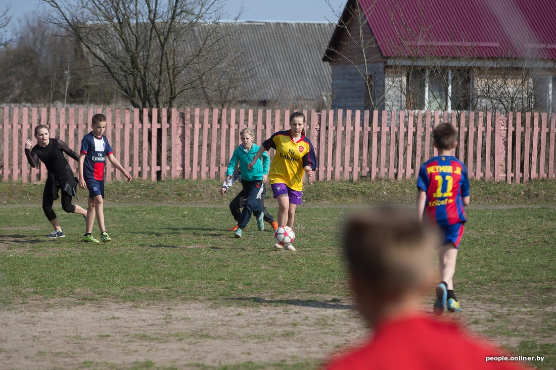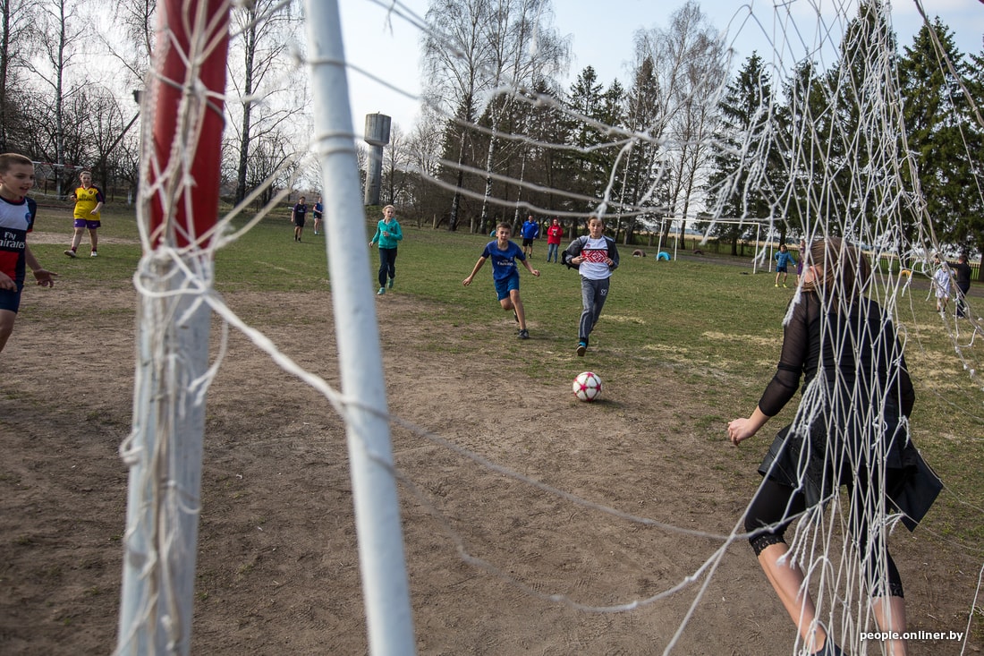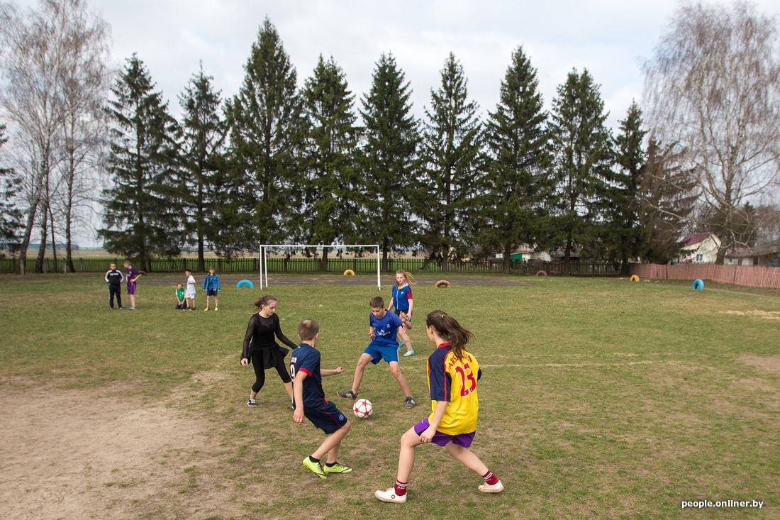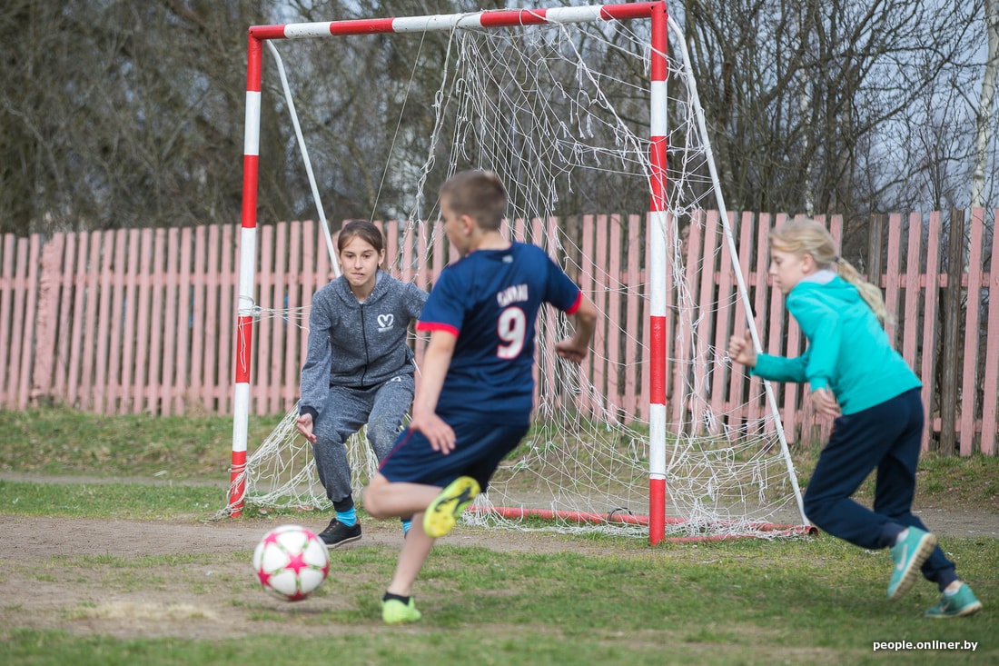 На стадионе Дружиловичской средней школы слышно, как квакают лягушки. Учитель физкультуры Андрей Климовец собирает по полю мячи. Скоро должны прийти на тренировку девочки. Сам родом из Иваново, он работает в местной школе четвертый год. О том, как удалось создать женскую сборную, не особенно рассказывает, скромничает. Говорит, как-то вышло само.