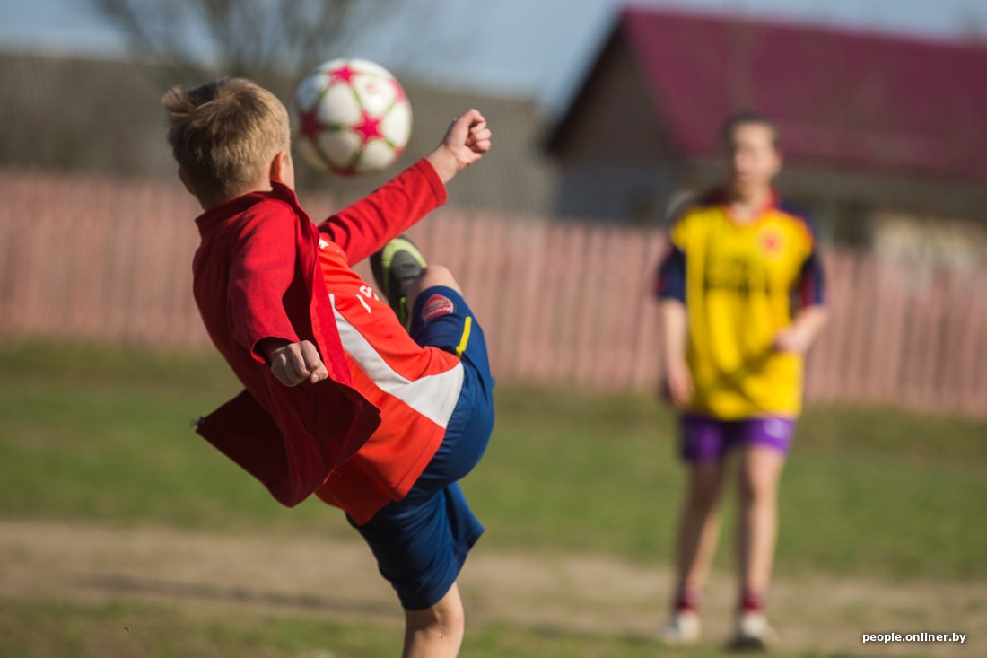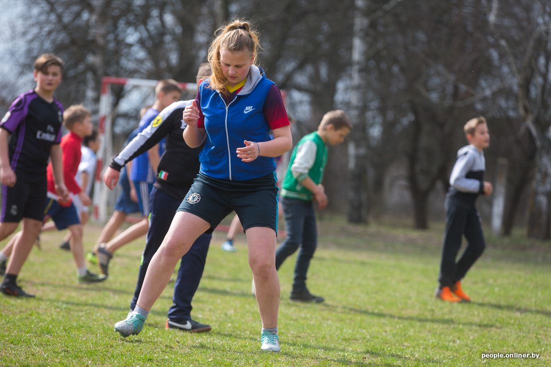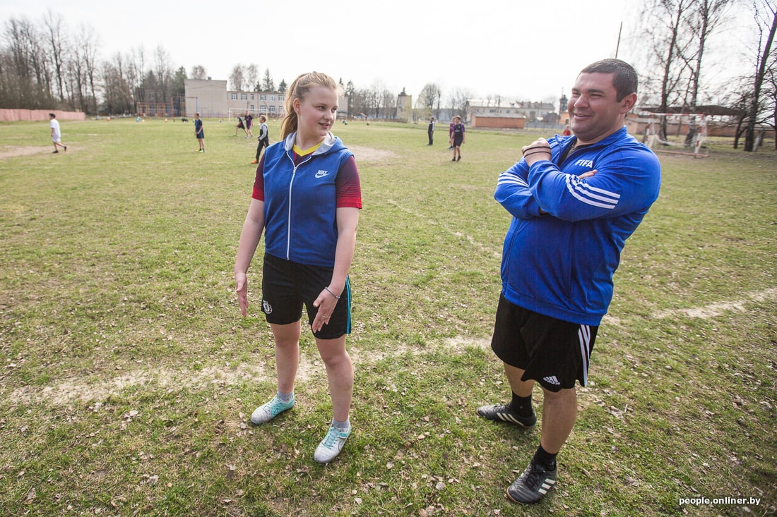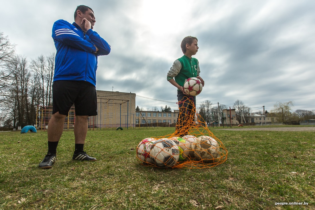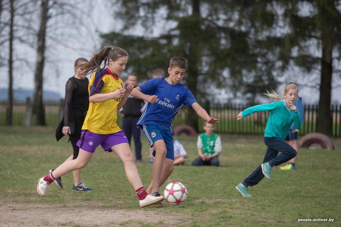 На стадионе Дружиловичской средней школы слышно, как квакают лягушки. Учитель физкультуры Андрей Климовец собирает по полю мячи. Скоро должны прийти на тренировку девочки. Сам родом из Иваново, он работает в местной школе четвертый год. О том, как удалось создать женскую сборную, не особенно рассказывает, скромничает. Говорит, как-то вышло само.