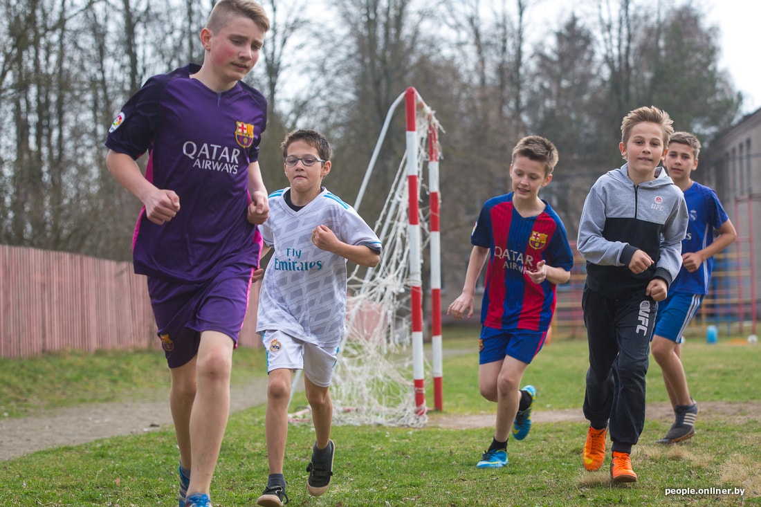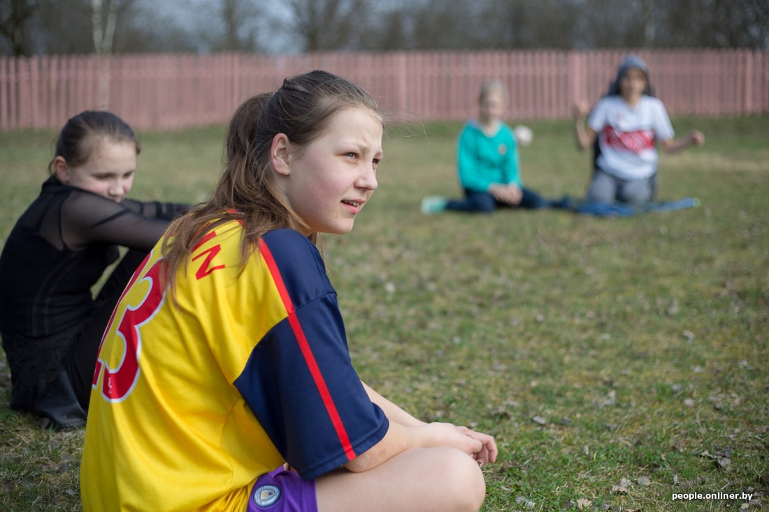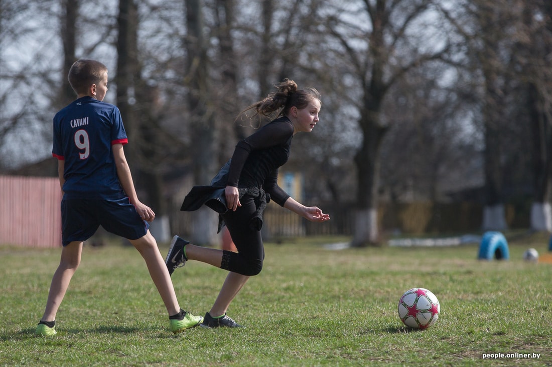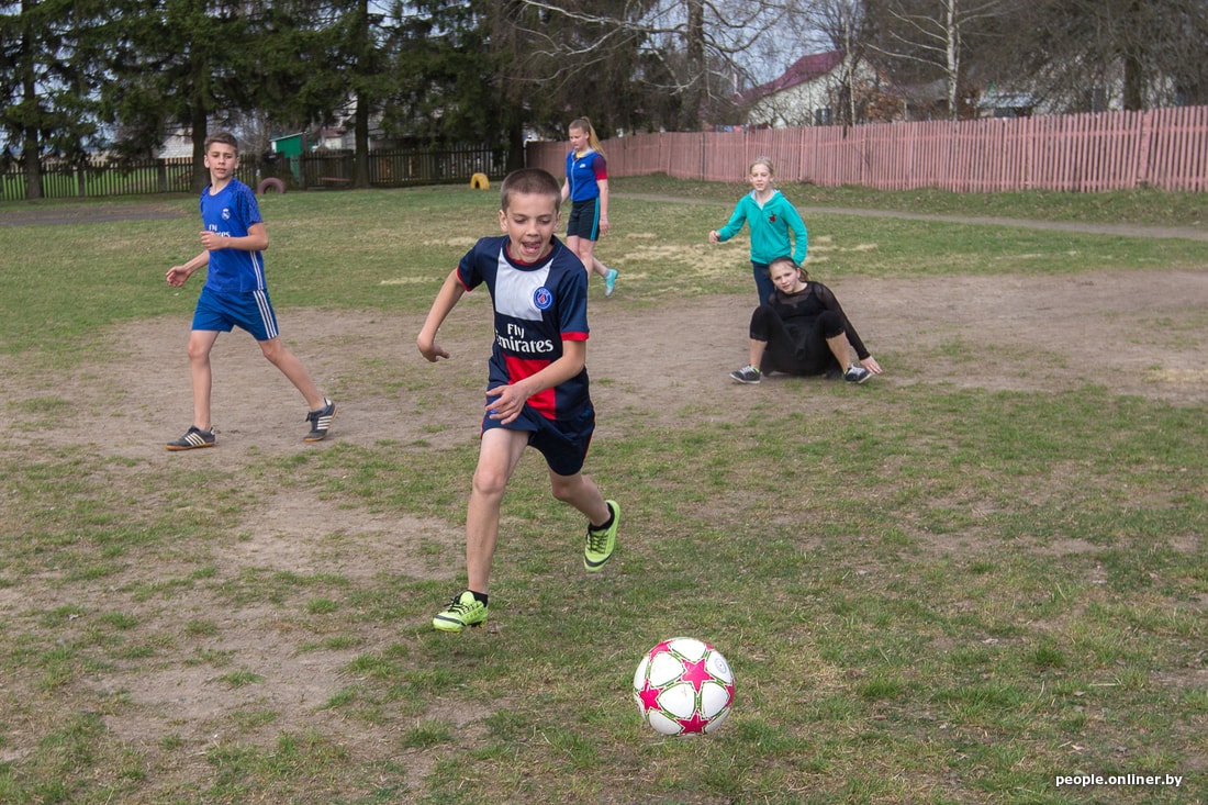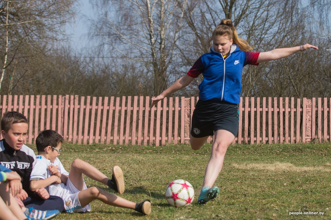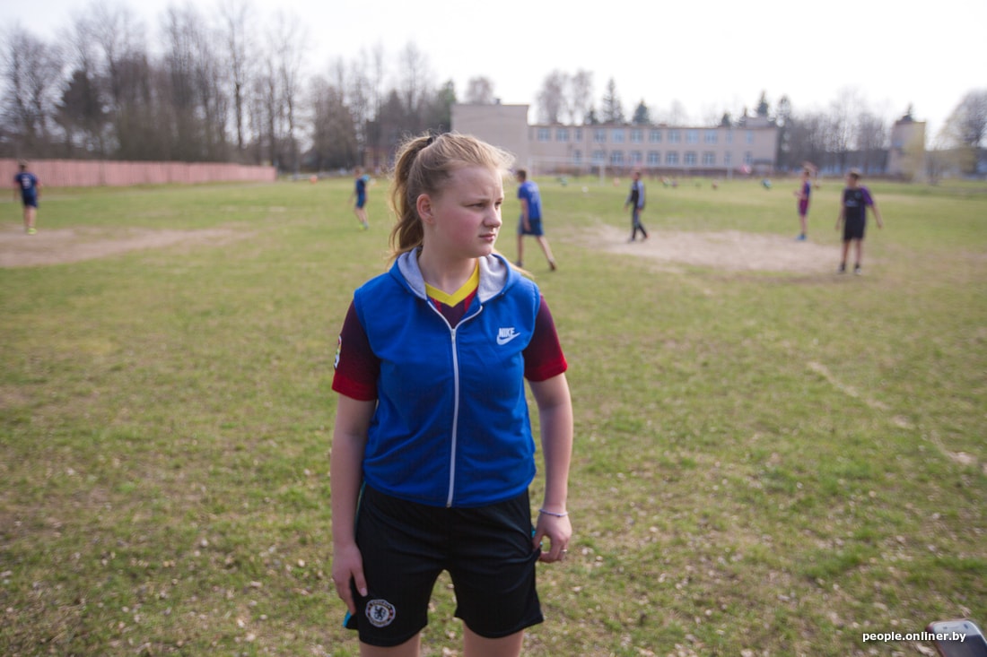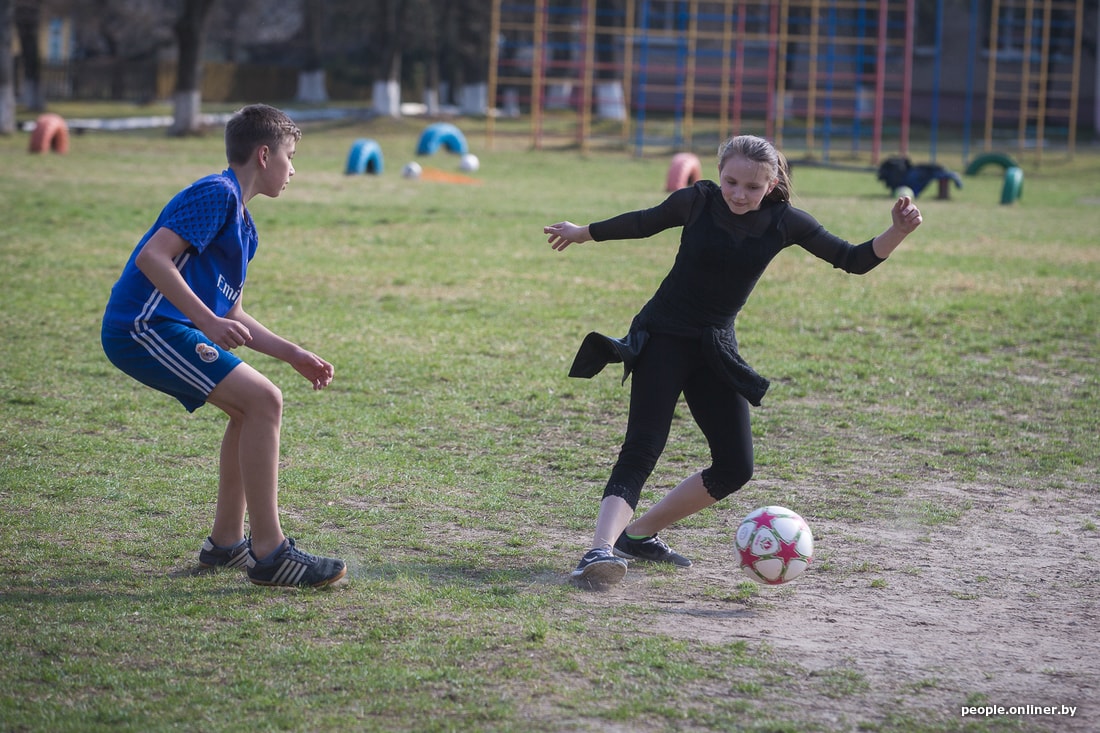 Тут звенит финальный свисток. Тренировка заканчивается, девчонки идут переодеваться и по домам. Таня выходит из школы и мы вместе идем домой по длинной асфальтированной улице Дружиловичей. Девушка признается, что она очень общительная. С горящими глазами рассказывает, как съездила в Англию по благотворительной программе для детей, переживших рак.