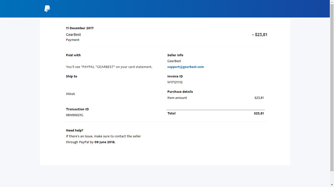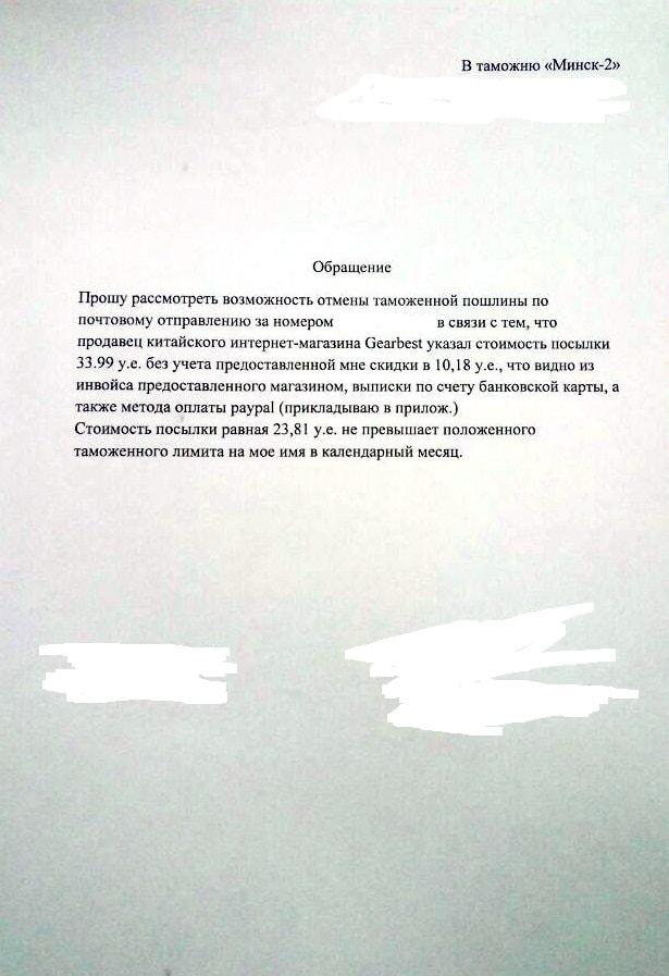Александр направил в таможню электронное обращение с просьбой пересмотреть пошлину. Он отправил через форму электронных обращений все документы, которые у него были на руках: инвойс магазина, который выдали в его личном кабинете, оригинал выписки с PayPal, через который была оплата, выписку по карте, к которой привязан аккаунт PayPal.