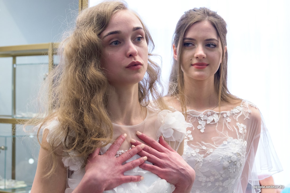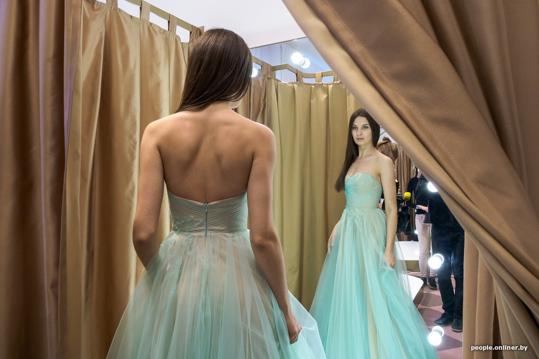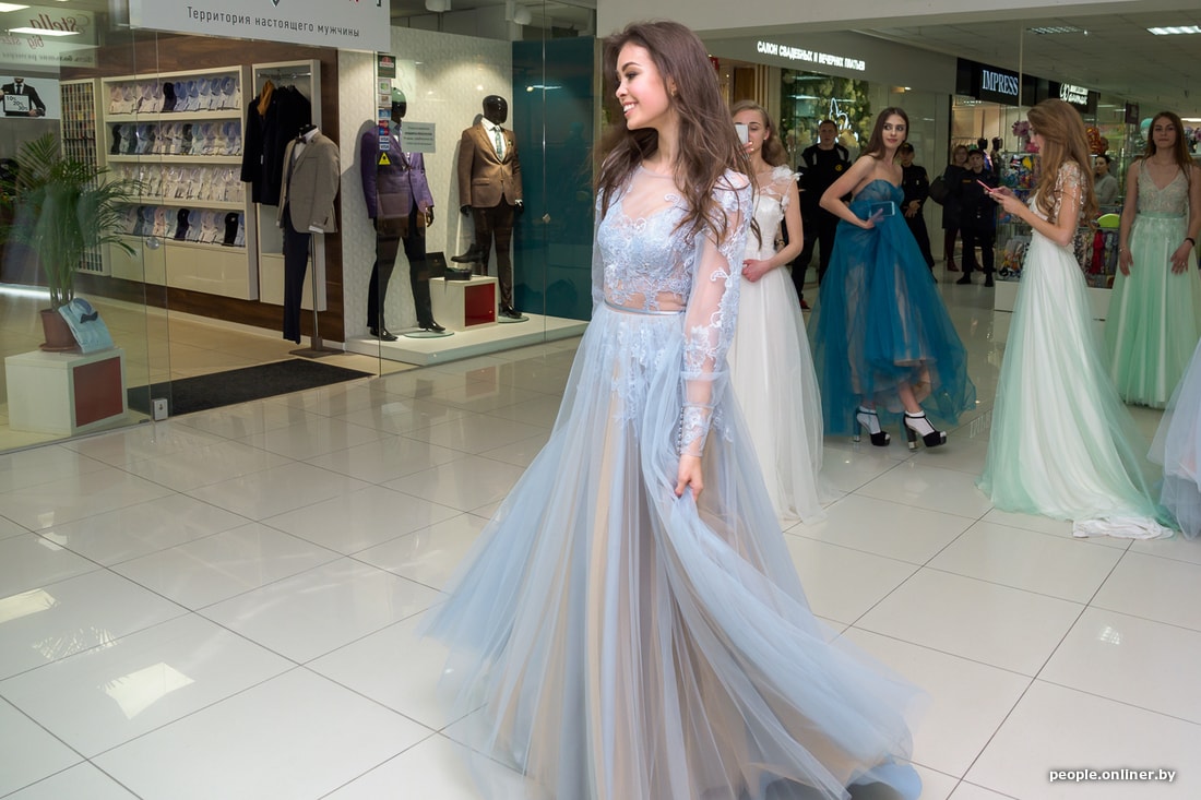 Третий этаж торгового центра полнится зеваками. Девушки высыпают на коридор, чтобы лучше прочувствовать платья. Десять из них покажутся в таком виде на сцене Дворца спорта 4 мая.