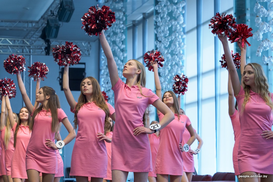 У дядек из службы безопасности конкурса лучшая в мире работа: стерегут покой 30 молодых женщин, красоту которых организаторы считают самой выдающейся в стране, по сто тысяч раз смотрят прогоны дефиле, угощают хореографов бананами, расплываются в улыбках. Грозный вид больших мужчин обычно камуфлирует в них добряков и милах. В претендентках на титул «Мисс Беларусь» ничего камуфлировать не надо — напротив, надо выставлять напоказ в как можно более выгодном свете. До финального шоу остается неделя. Пока девушки муштровали проходки и толпились на примерке, корреспонденты Onliner.by засвидетельствовали их тренировочный вечер.
