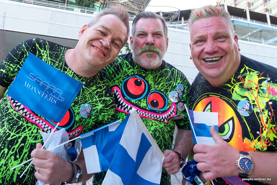 Накануне финала конкурса в пресс-центр заходят самые невообразимые персонажи. Вы только посмотрите — финскую артистку приехали поддержать монстры из Lordi. В арене все моментально срываются со своих мест и бегут с ними фотографироваться.