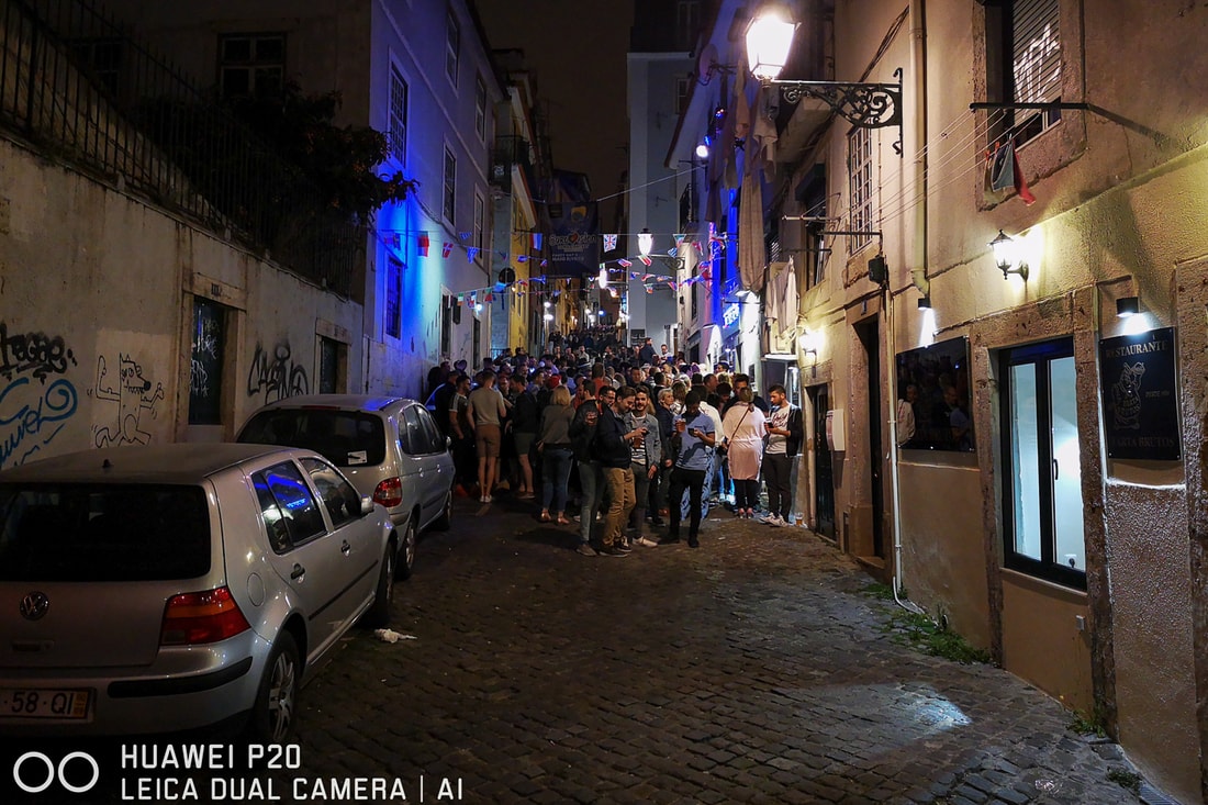 Узкие улицы Лиссабона — это отличные декорации для пьяной и веселой тусовки. Над головами озорных гуляк сушится белье, кто-то ворочается в кровати, а внизу — галдеж, братания и самые массовые тосты из тех, что вам доводилось видеть. Бармен миксует пол-литровую «Кайпиринью», солидный дядюшка, который в Беларуси уже готовился бы к достойной пенсии, стоит на углу улицы и продает наркотики фразой «мариуана», которая не требует углубления в диалектику.